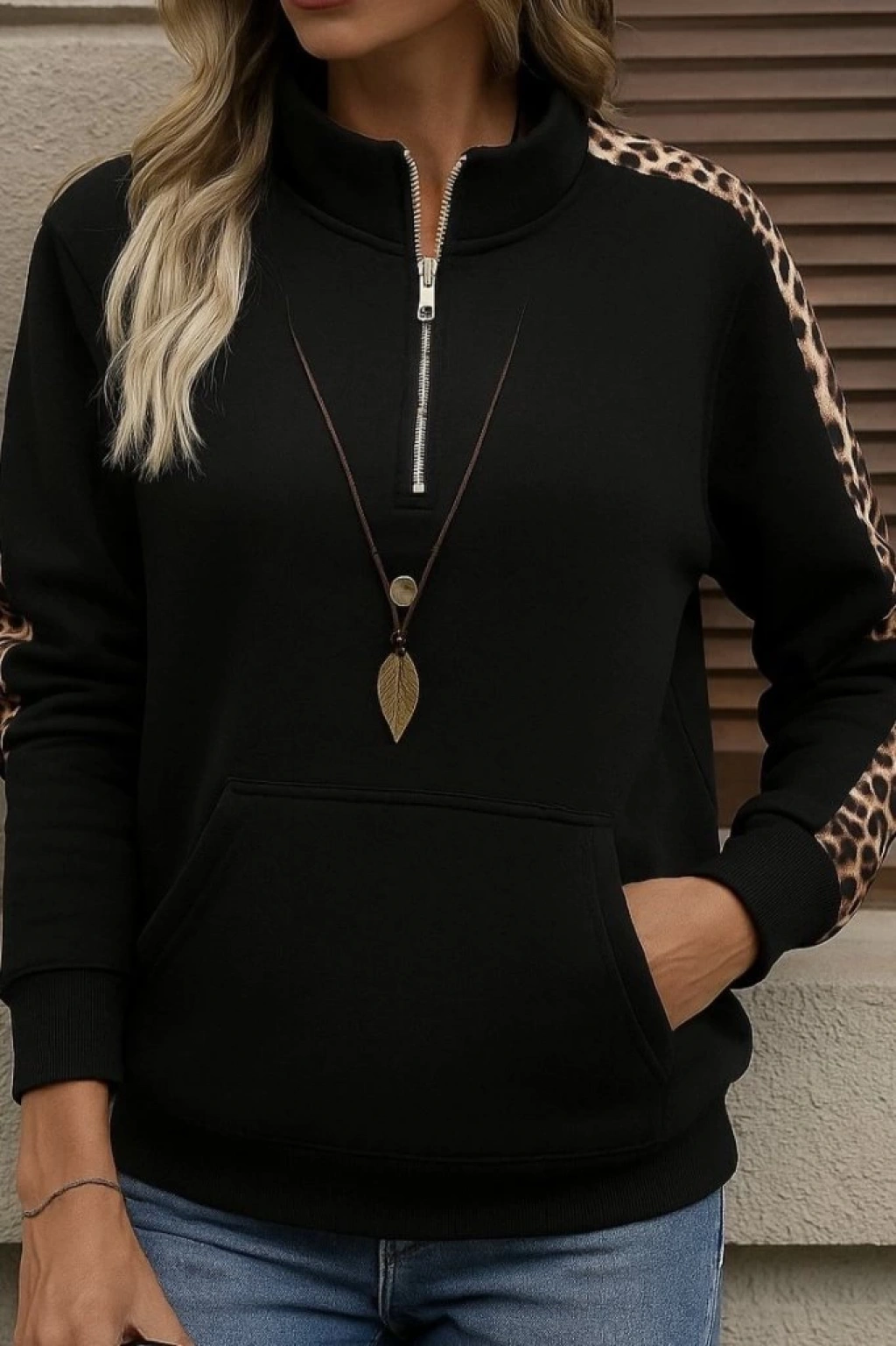 Kadın Uzun Kollu Balıkçı Yaka önden Fermuarlı Polar Bluz