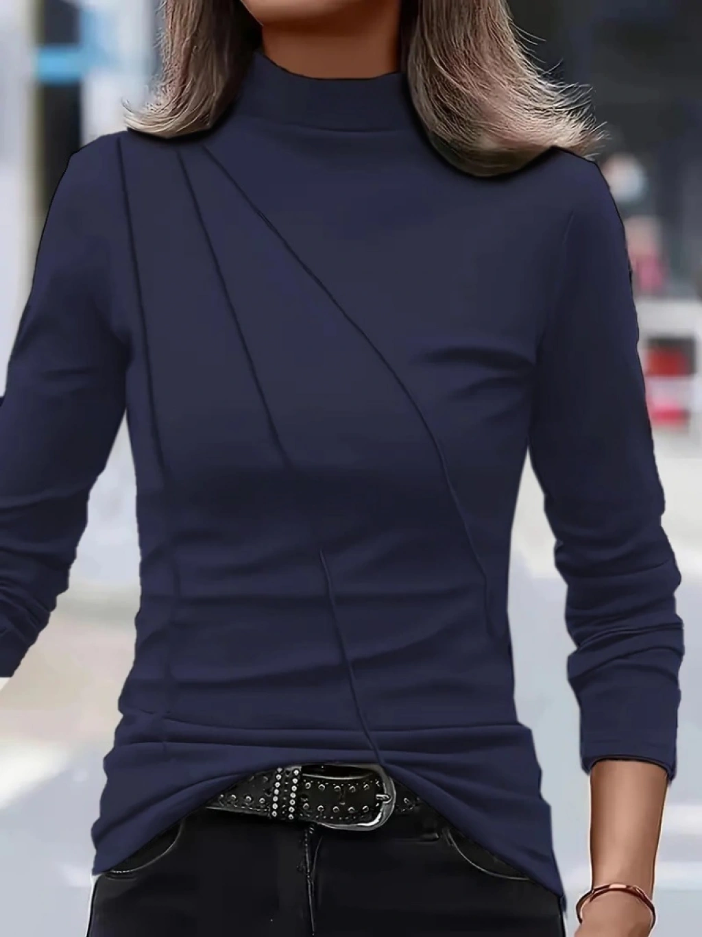 Kadın Uzun Kollu Balıkçı Yaka önden şerit Detay Dalgıç Bluz