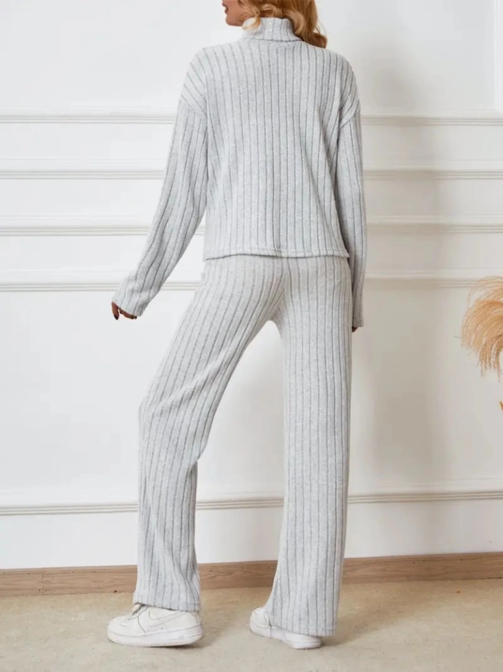 Kadın Uzun Kollu Balıkçı Yaka şardonlu Bluz Ve Pantolon Ikili Takım