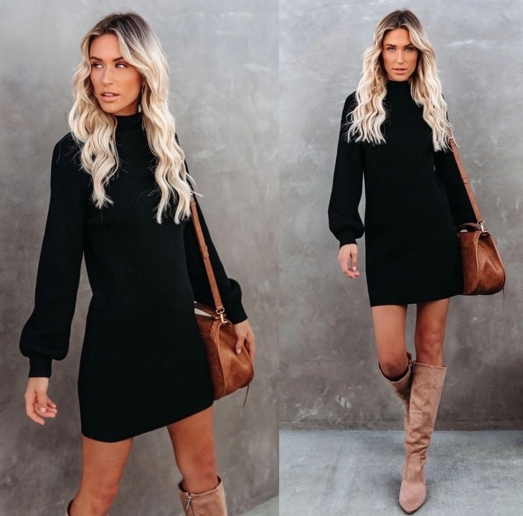 Kadın Uzun Kollu Balıkçı Yaka şardonlu Kaşkorse Elbise