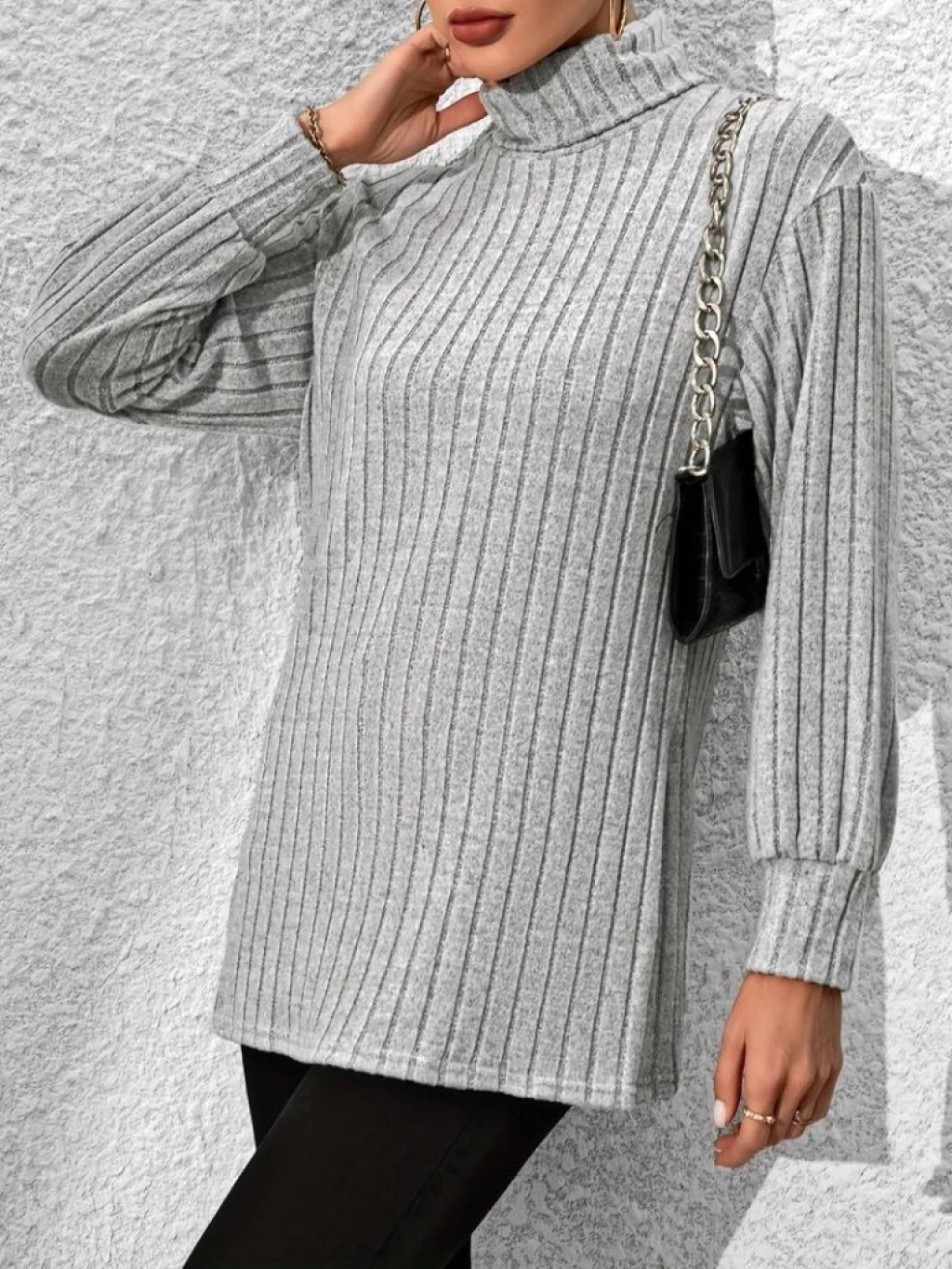 Kadın Uzun Kollu Balıkçı Yaka Yandan Yırtmaçlı şardonlu Kaşkorse Bluz