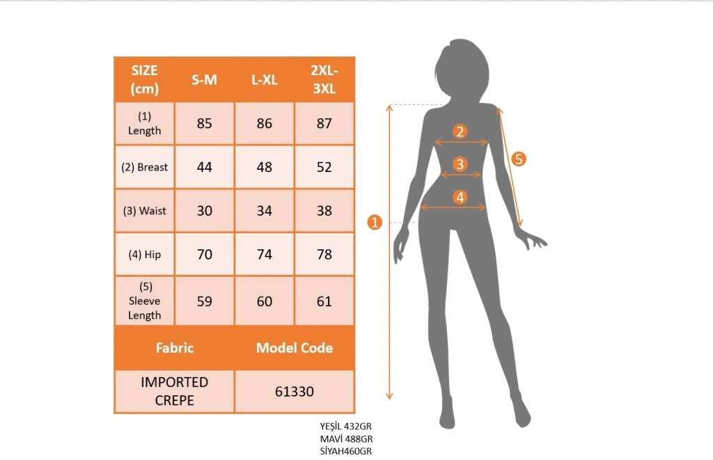 Modelin Ölçüleri: Boy:165, Kg:55, Göğüs:90, Bel:72, Kalça: 100