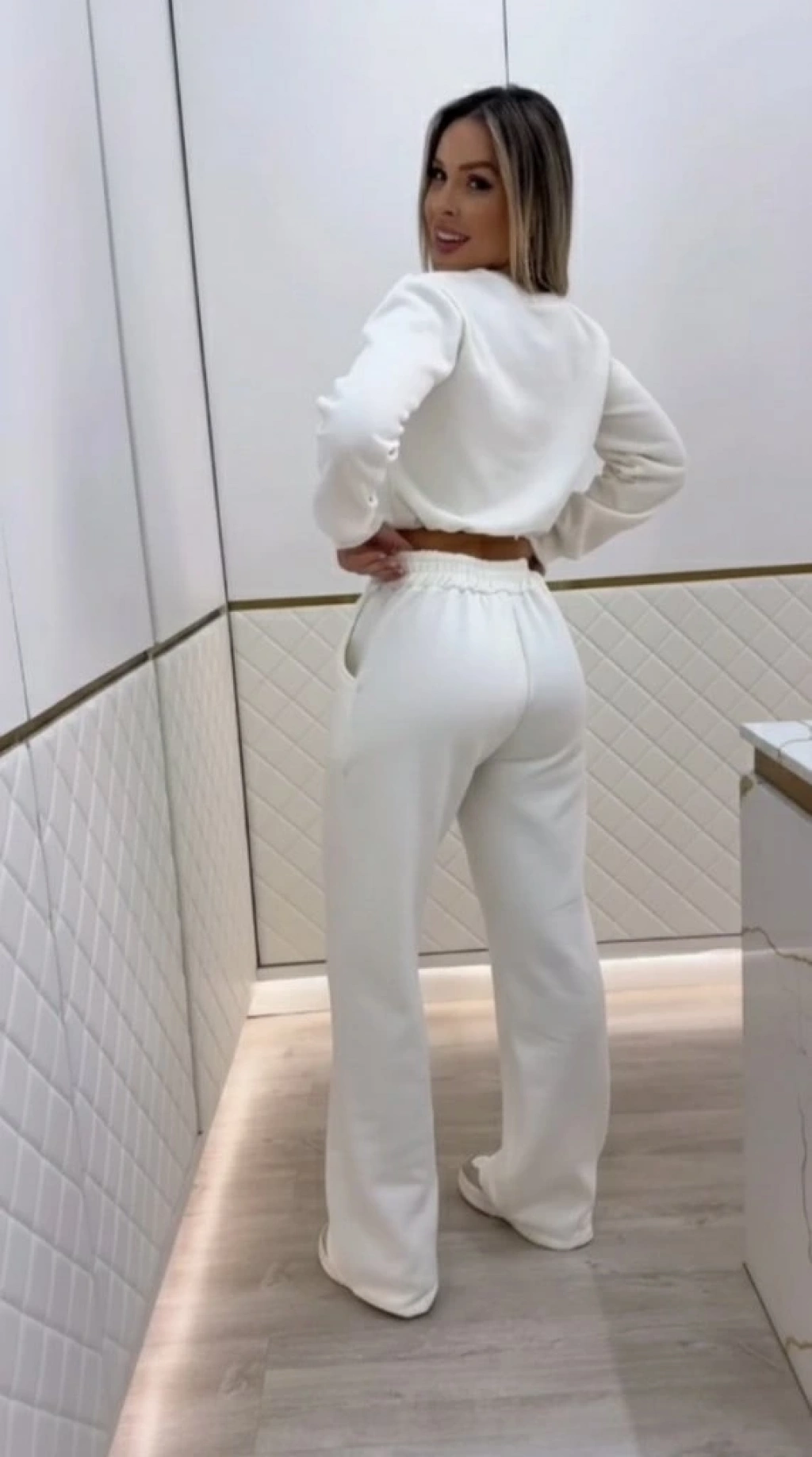 Kadın Uzun Kollu Bisiklet Yaka Desenli Iki Iplik şardonlu Bluz Ve Pantolon Ikili Takım