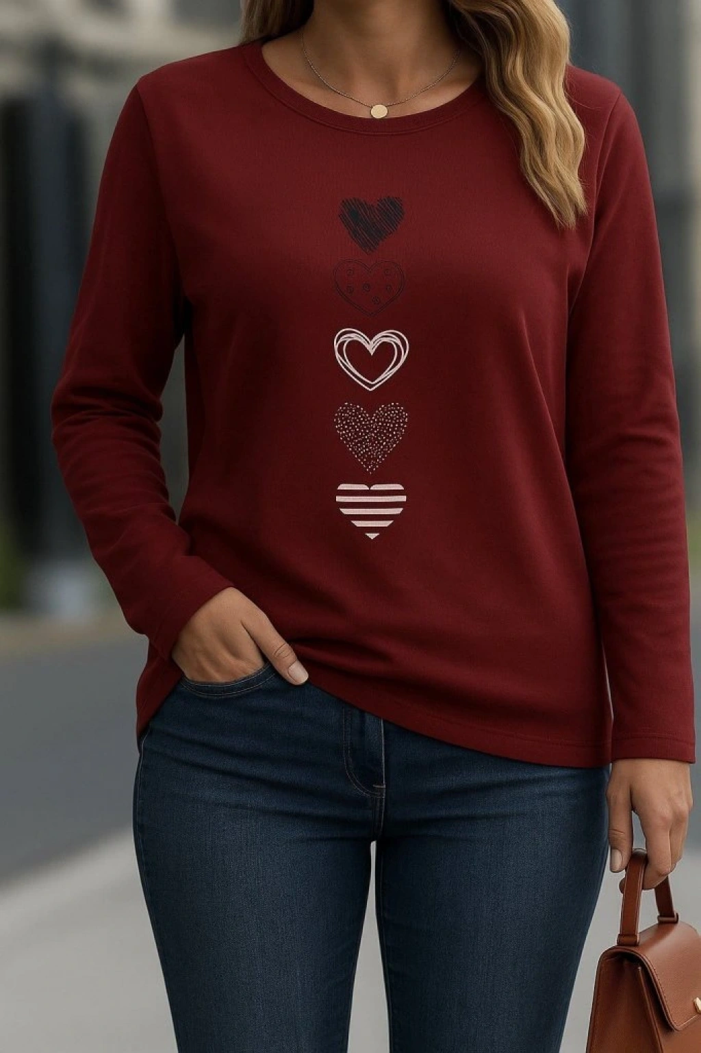 Kadın Uzun Kollu Bisiklet Yaka Desenli Viskon Bluz