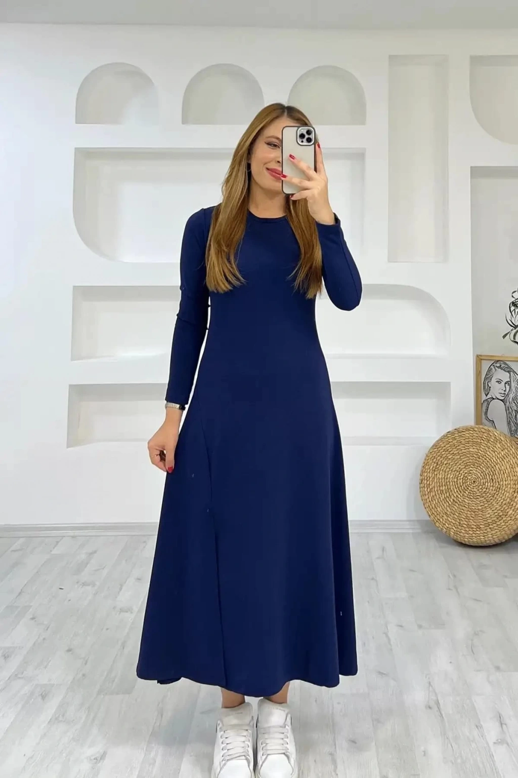 Kadın Uzun Kollu Bisiklet Yaka Size Kadar Yırtmaç Detay Maxi Boy Elbise