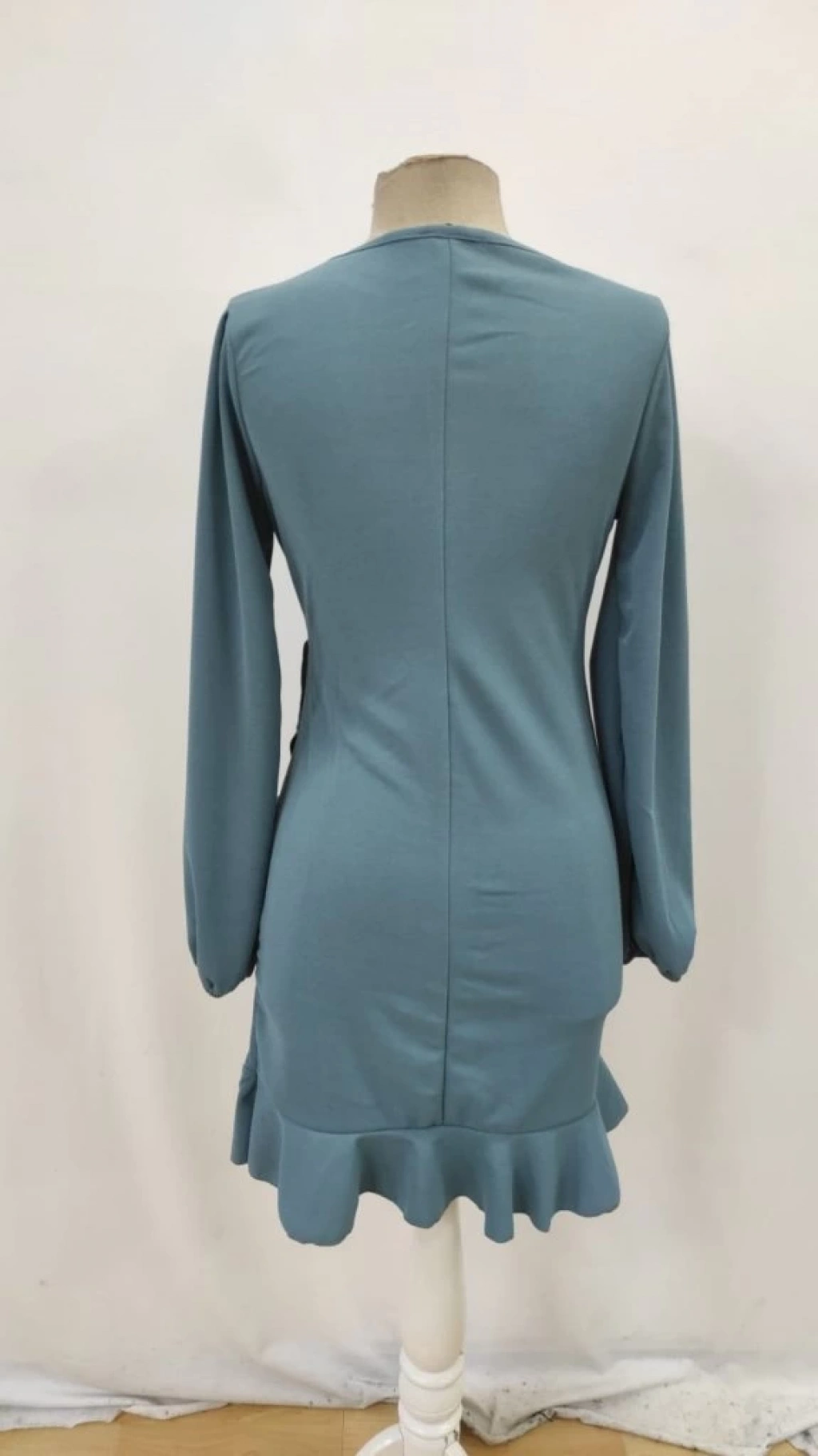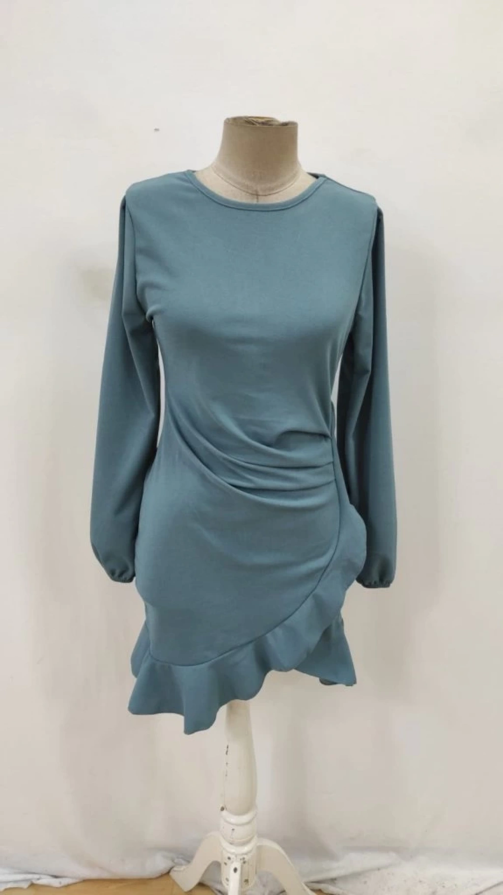 Kadın Uzun Kollu Bisiklet Yaka önden Volanlı Ithal Krep Elbise