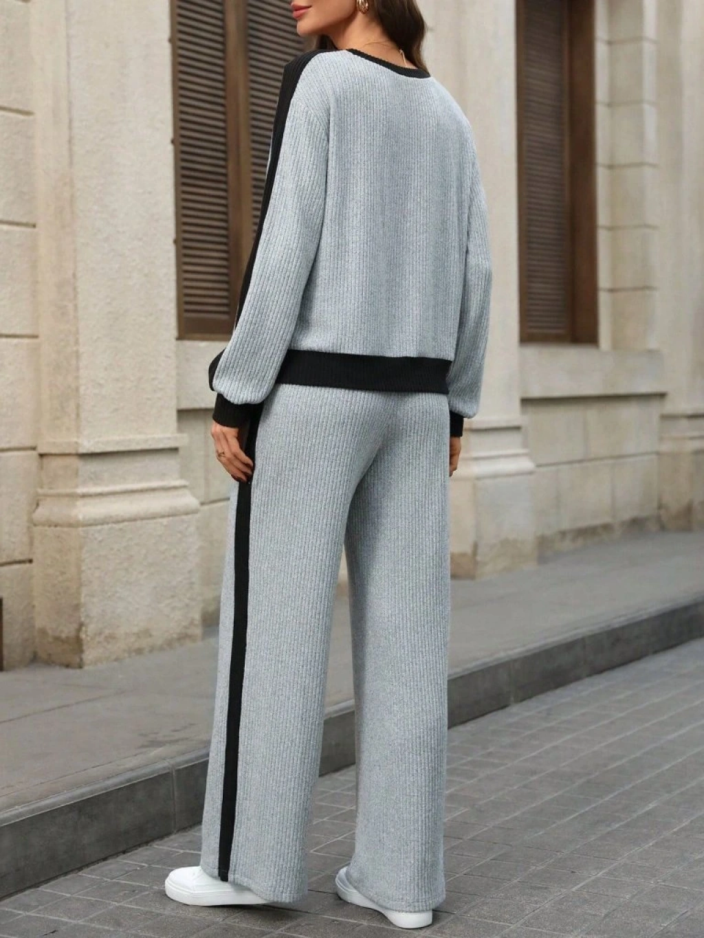 Kadın Uzun Kollu Bisiklet Yaka şardonlu Kaşkorse Bluz Ve Pantolon Ikili Takım