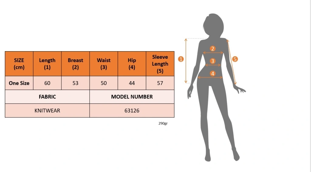 Modelin Ölçüleri: Boy:165, Kg:55, Göğüs:90, Bel:72, Kalça: 100