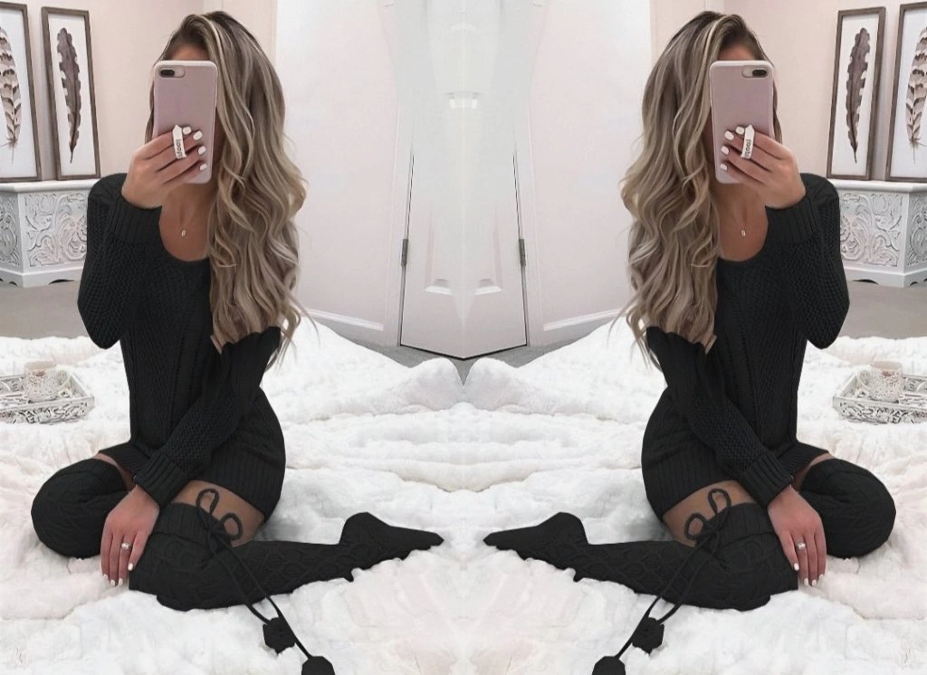 Kadın Uzun Kollu Bisiklet Yaka Triko Elbise (çorapsız)