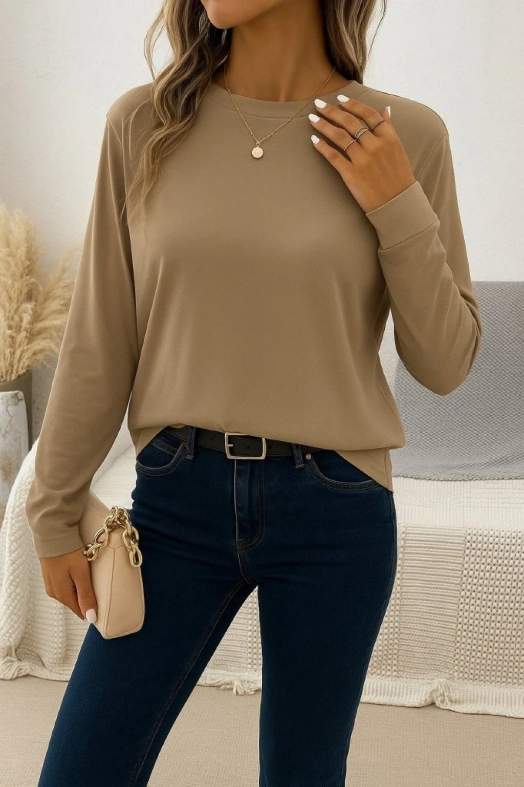 Kadın Uzun Kollu Bisiklet Yaka Viskon Bluz