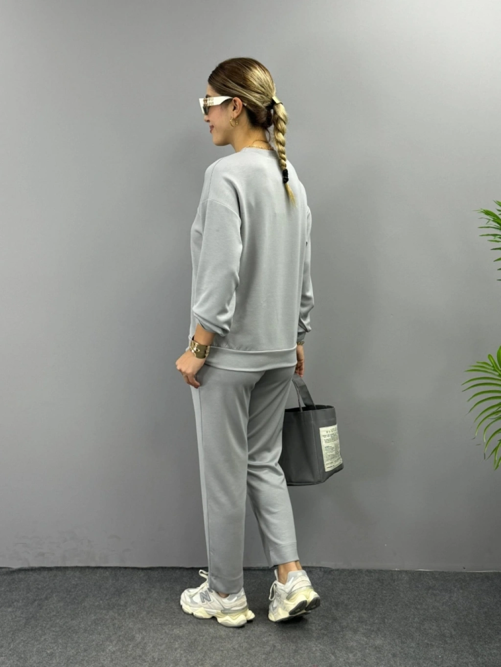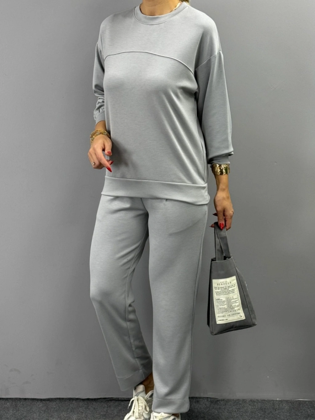 Kadın Uzun Kollu Bisiklet Yaka Viskon Iki Iplik Bluz Ve Pantolon Ikili Takım