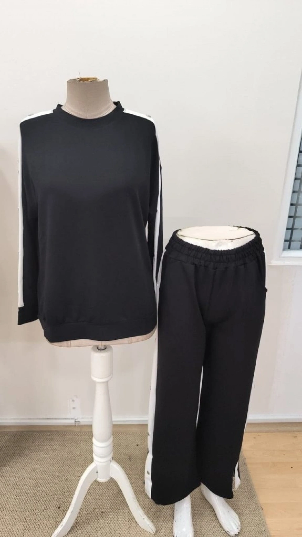 Kadın Uzun Kollu Bisiklet Yakalı Düğmeli Viskon Iki Iplik Bluz Ve Pantolon Ikili Takım