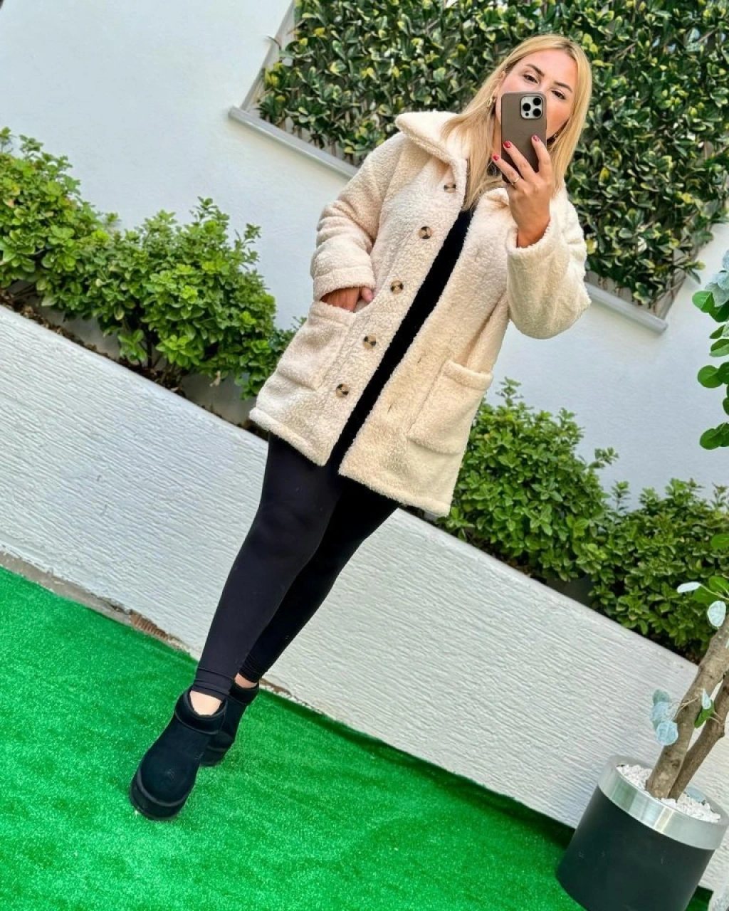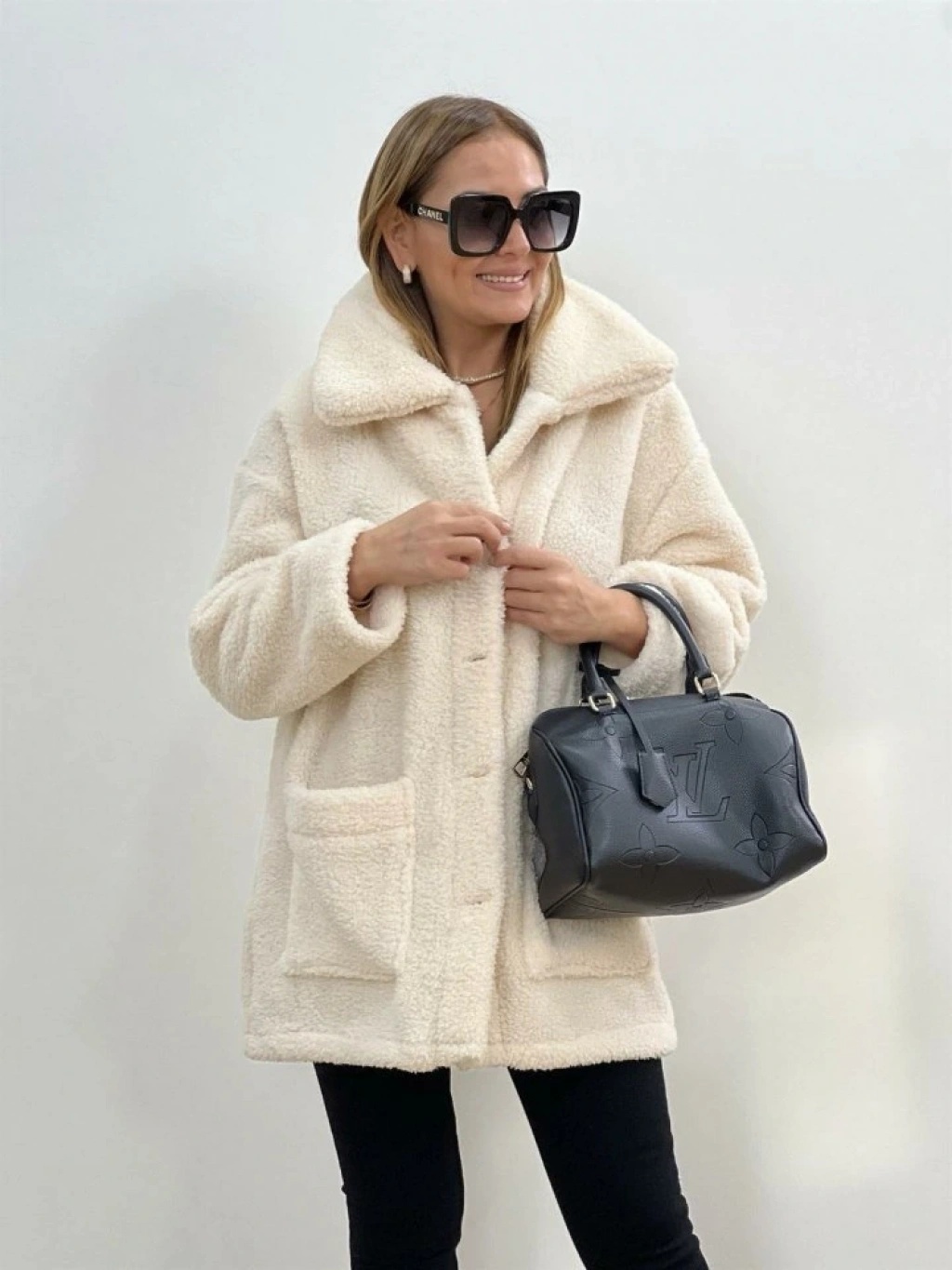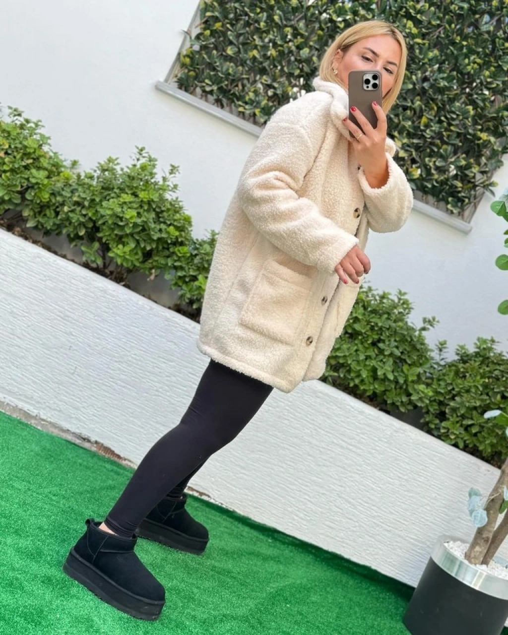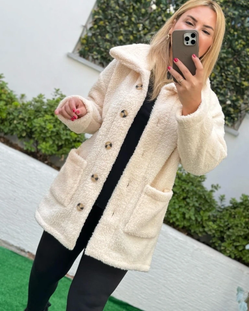 Kadın Uzun Kollu Cep Ve Düğme Detay Wellsof Kumaş Kaban