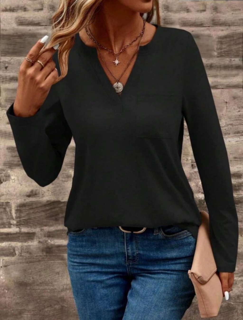 Kadın Uzun Kollu Cepli V Yakalı Viskon Iki Iplik Bluz