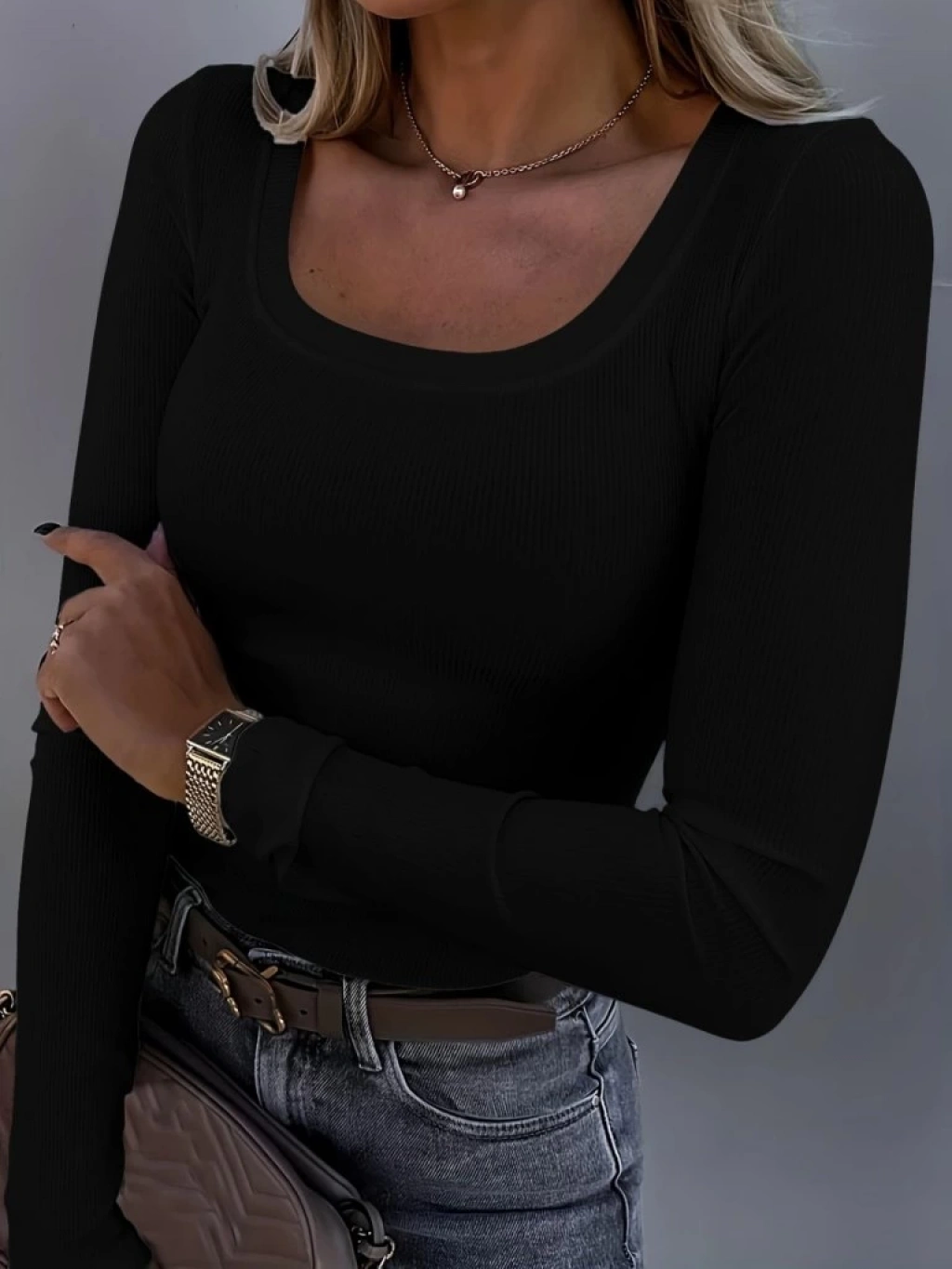 Kadın Uzun Kollu Derin Yuvarlak Yaka Kaşkorse Bluz