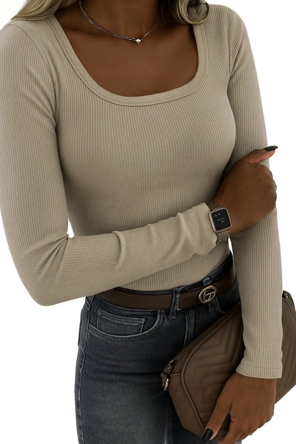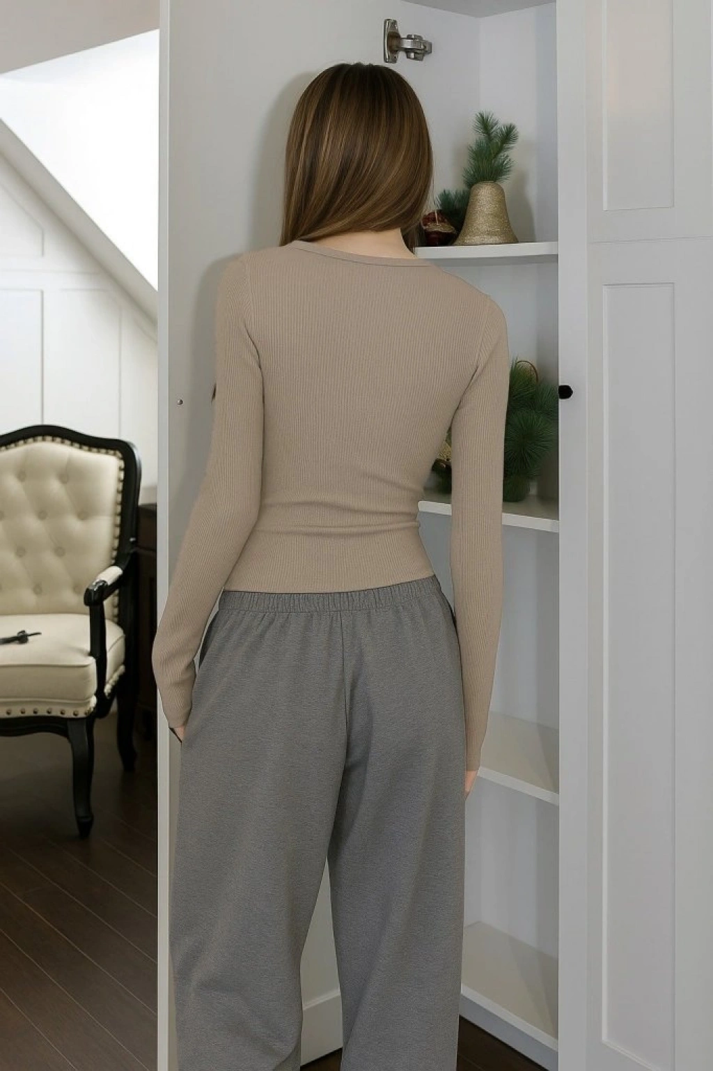 Kadın Uzun Kollu Derin Yuvarlak Yaka Kaşkorse Bluz