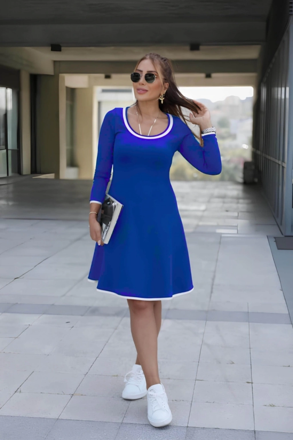 Kadın Uzun Kollu Derin Yuvarlak Yakalı Kısa Viskon Iki Iplik Elbise