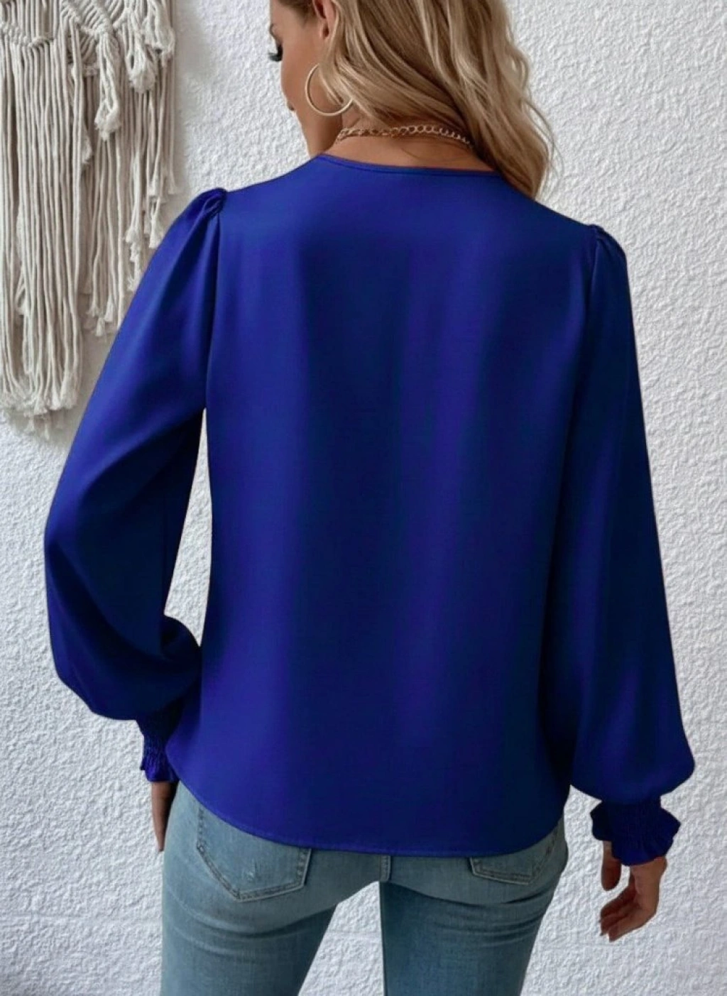 Kadın Uzun Kollu Dökümlü Kruvaze Yaka Kol Ucu Gipeli Sandy Lacivert Bluz
