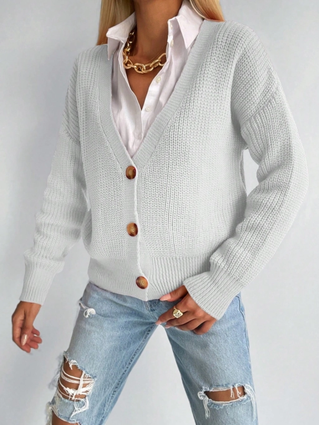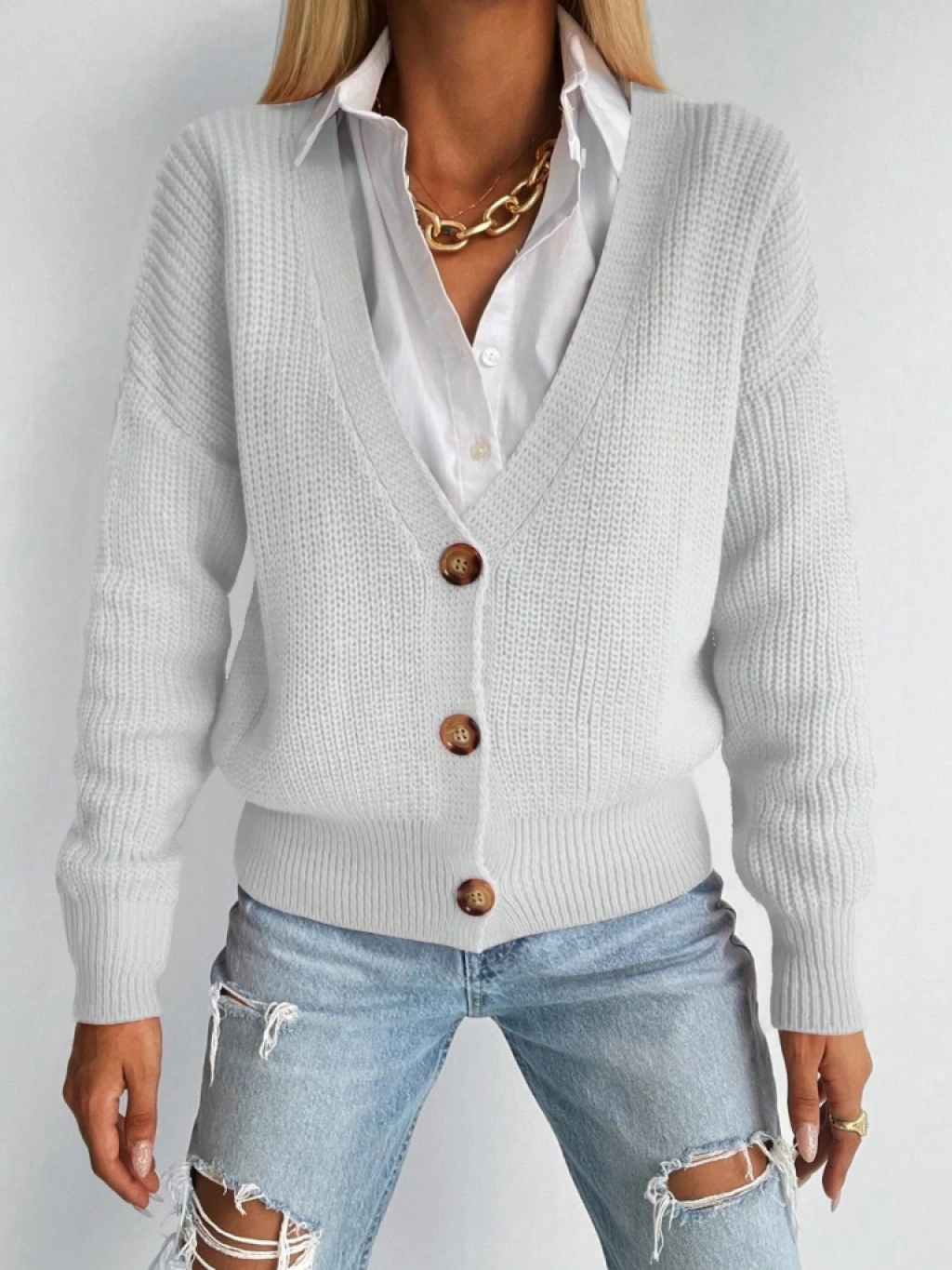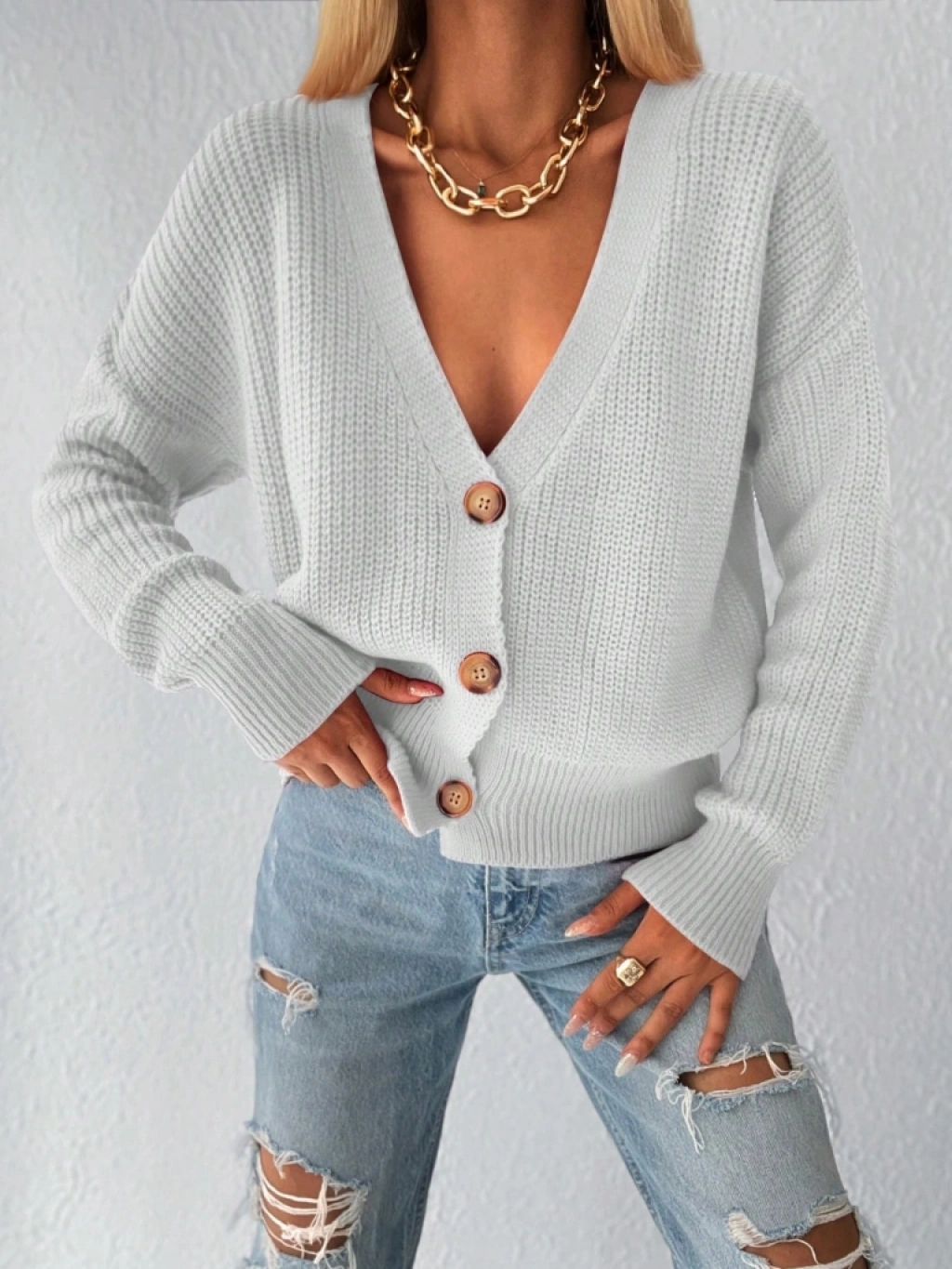 Kadın Uzun Kollu Düğme Detay Triko Bluz