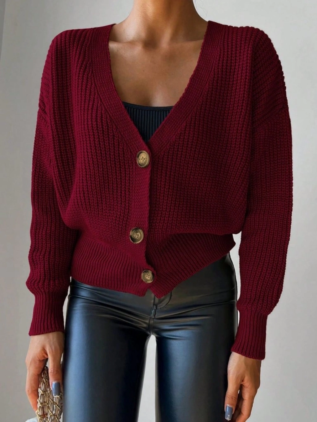 Kadın Uzun Kollu Düğme Detay Triko Bluz