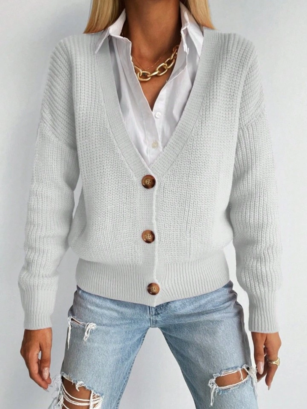 Kadın Uzun Kollu Düğme Detay Triko Bluz