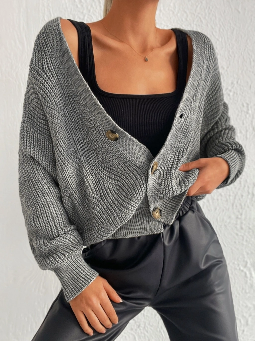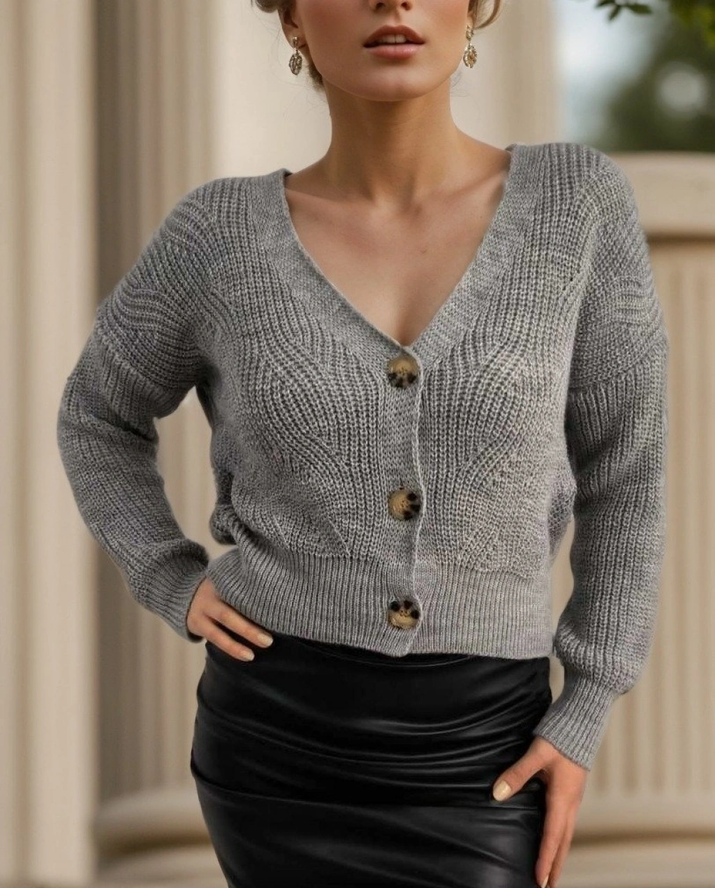 Kadın Uzun Kollu Düğme Detay Triko Hırka