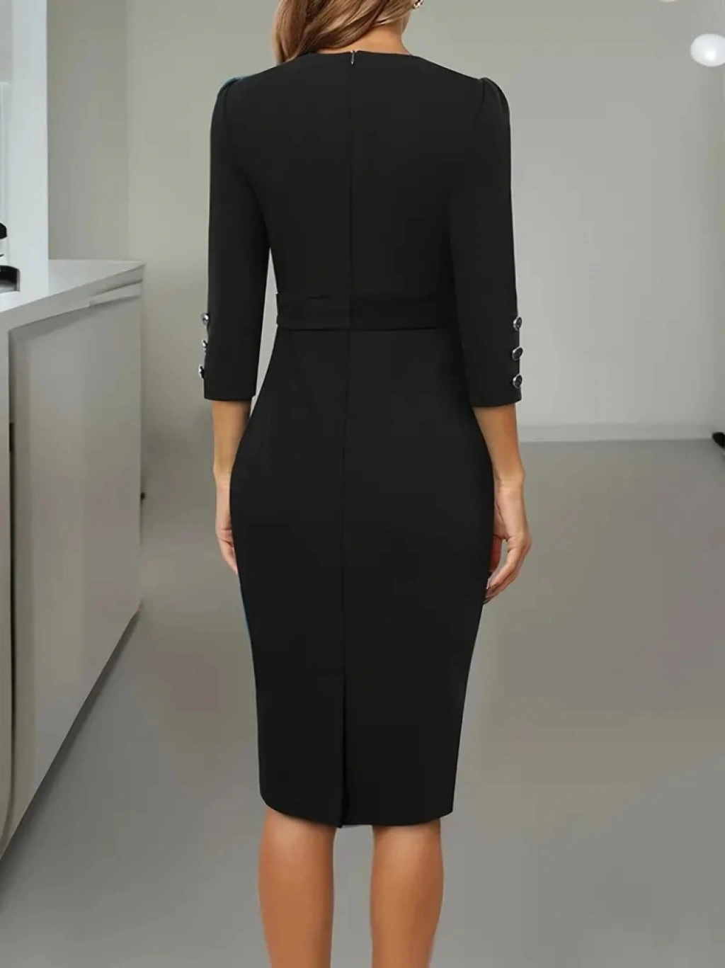 Kadın Uzun Kollu Düğme Detaylı Kendinden Kemerli Ithal Krep Elbise