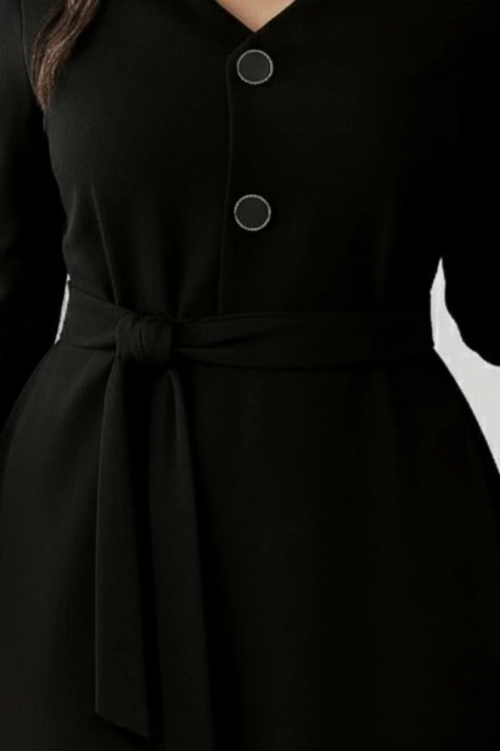 Kadın Uzun Kollu Düğme Detaylı Kendinden Kemerli Ithal Krep Elbise
