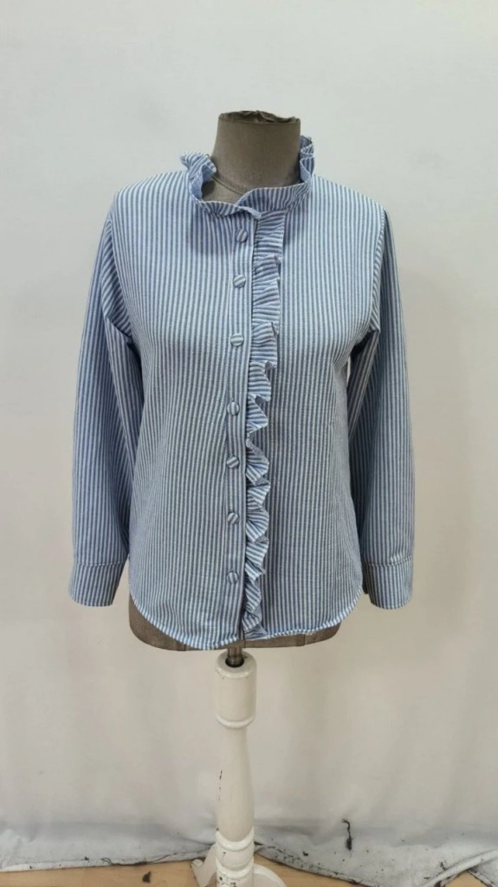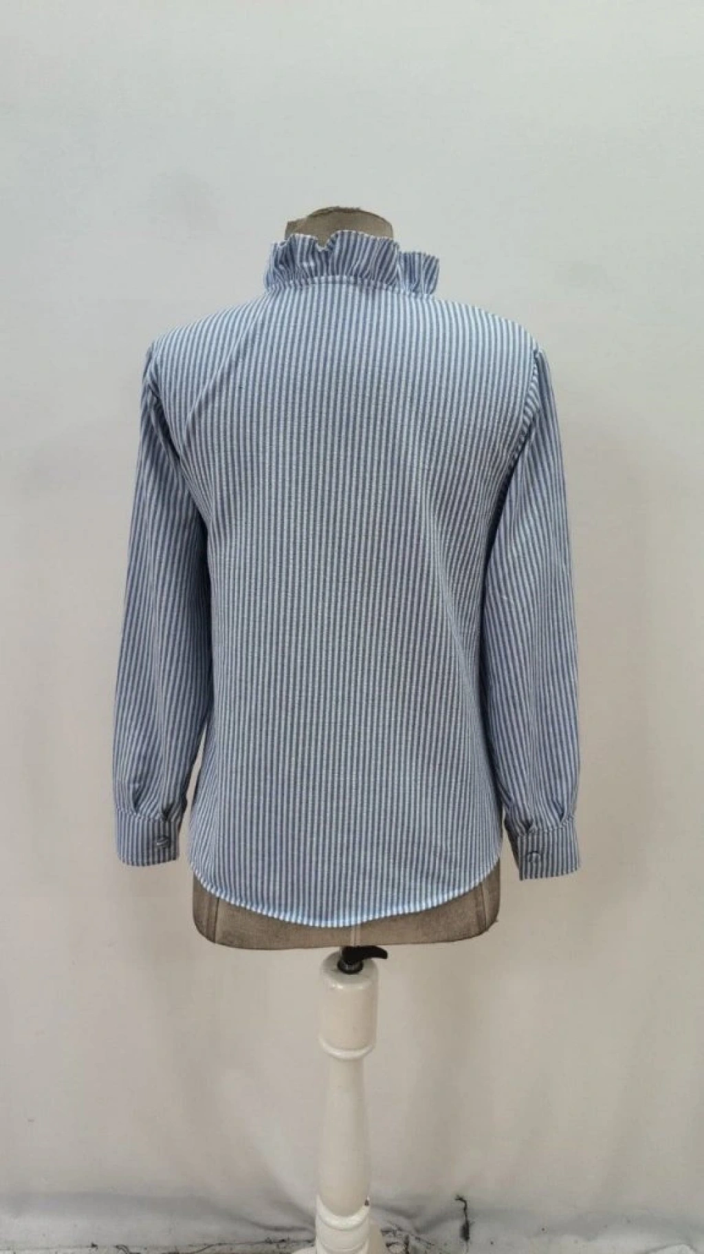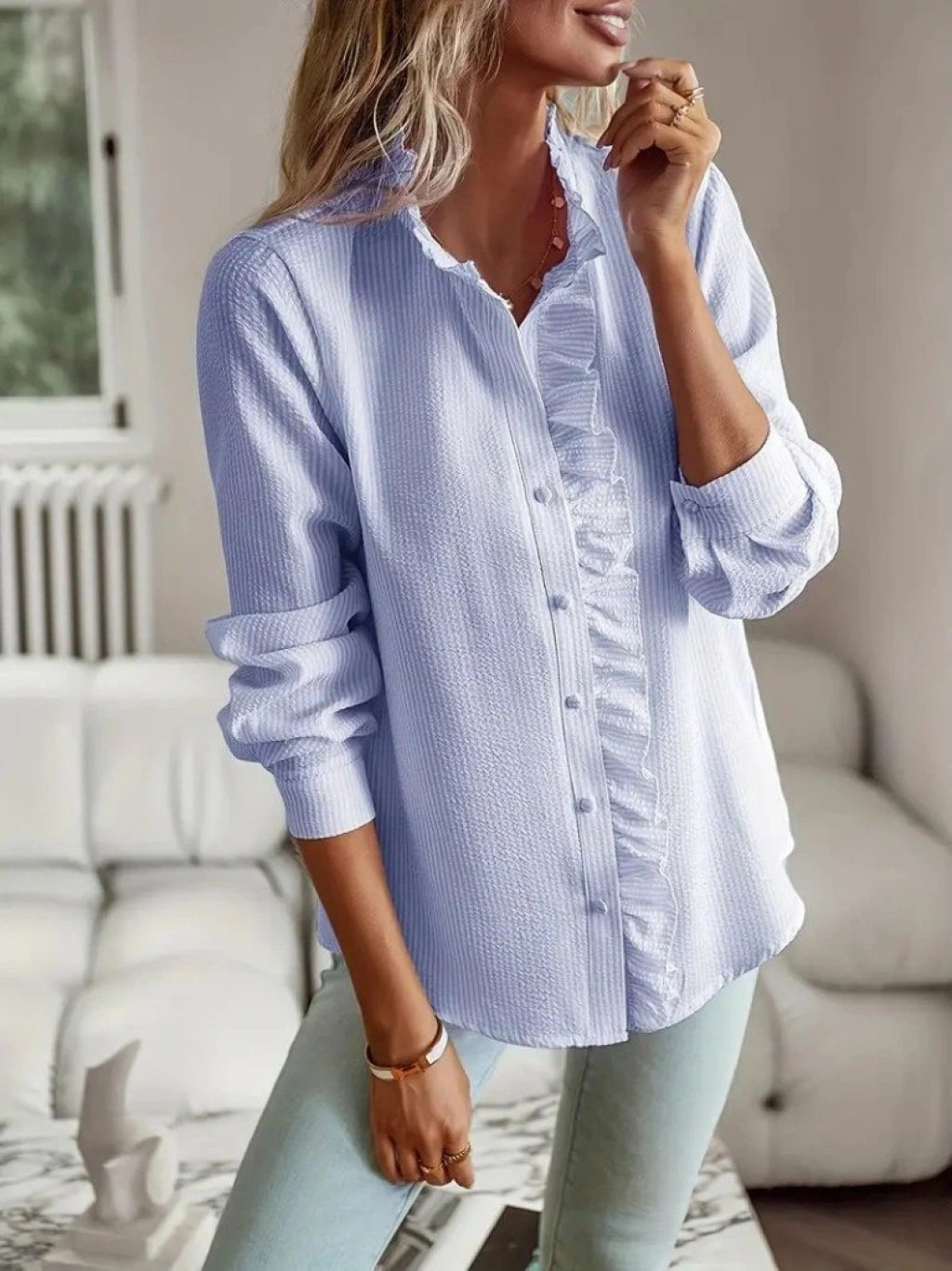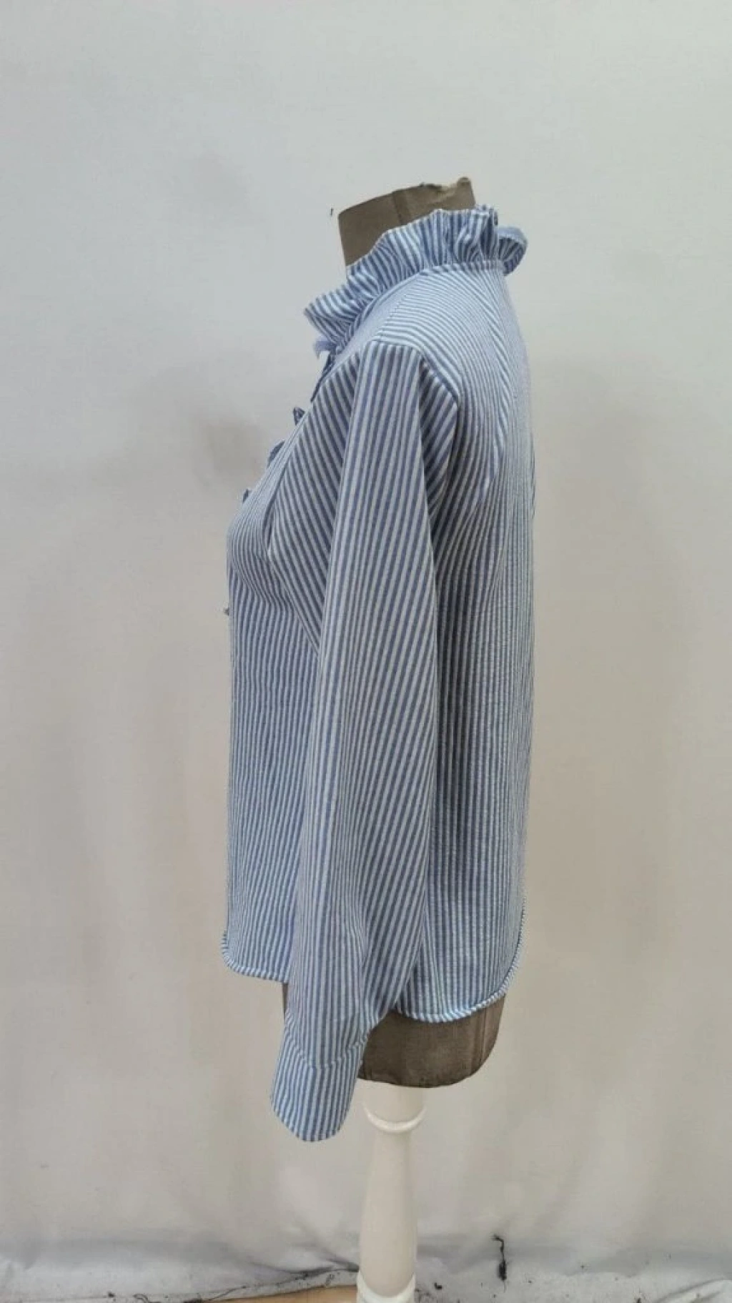 Kadın Uzun Kollu Fırfır Yakalı önden Düğmeli çizgili Burgu Gömlek