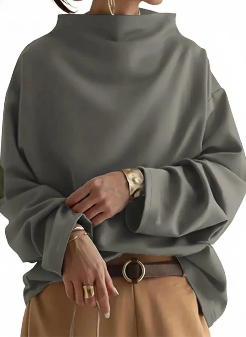Kadın Uzun Kollu Geniş Balıkçı Yaka Modal Bluz