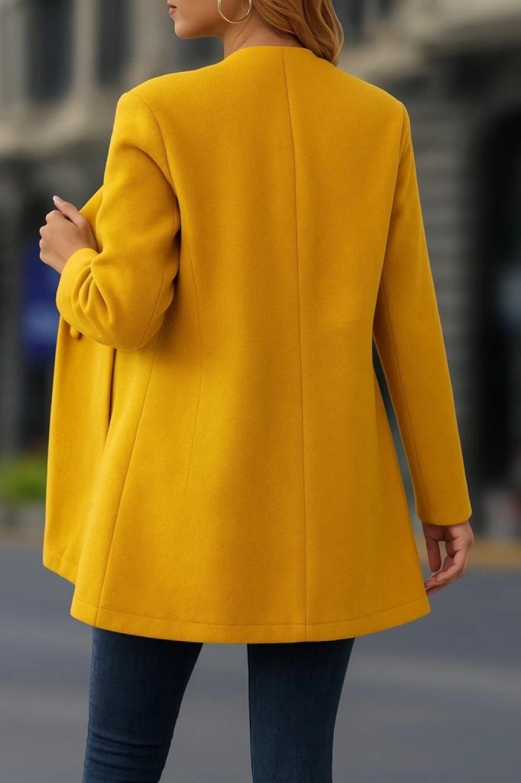 Kadın Uzun Kollu Hakim Yakalı önden Düğmeli Cep Detaylı Kısa Kaşe Kaban