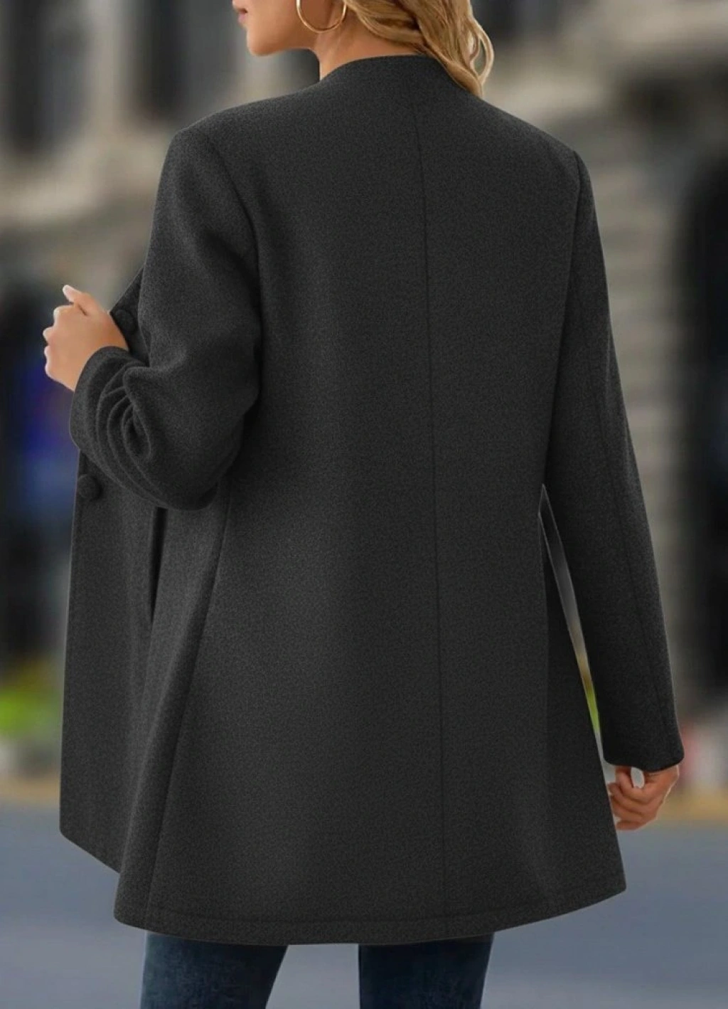 Kadın Uzun Kollu Hakim Yakalı önden Düğmeli Cep Detaylı Kısa Kaşe Kaban