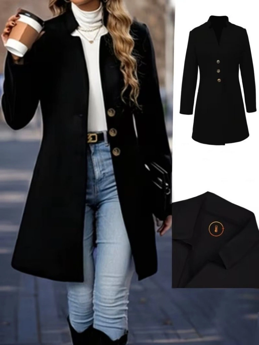 Kadın Uzun Kollu Hakim Yakalı önden Düğmeli Ithal Kaşe Astarsız Kısa Kaban
