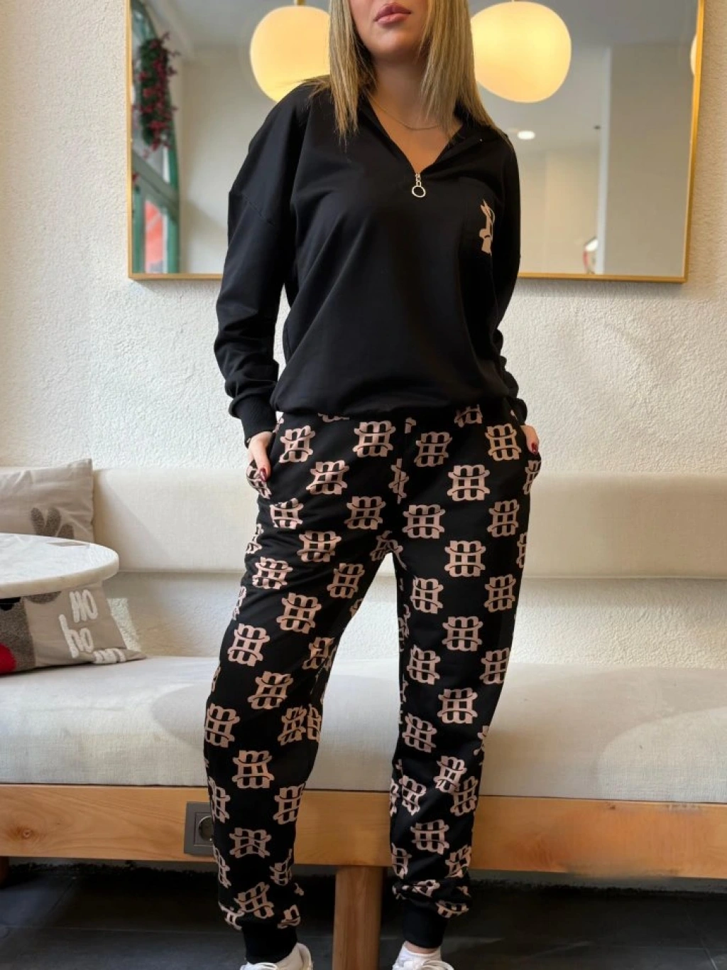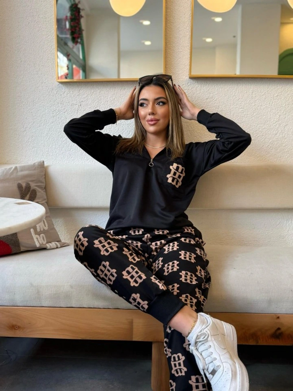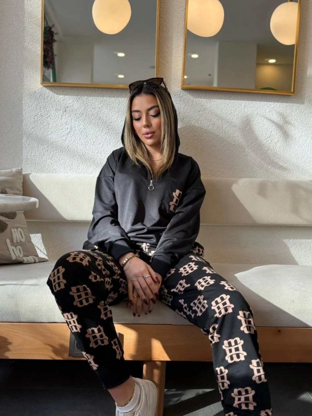 Kadın Uzun Kollu Iki Iplik Kumaş Fermuar Ve Cep Detay Kapüşonlu Ikili Takım