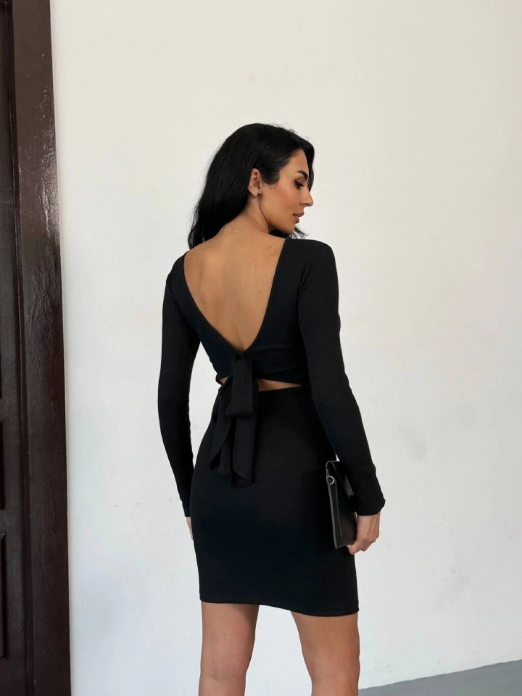 Kadın Uzun Kollu Sırt Dekoltesi Ve Fiyonk Detay Mini Elbise