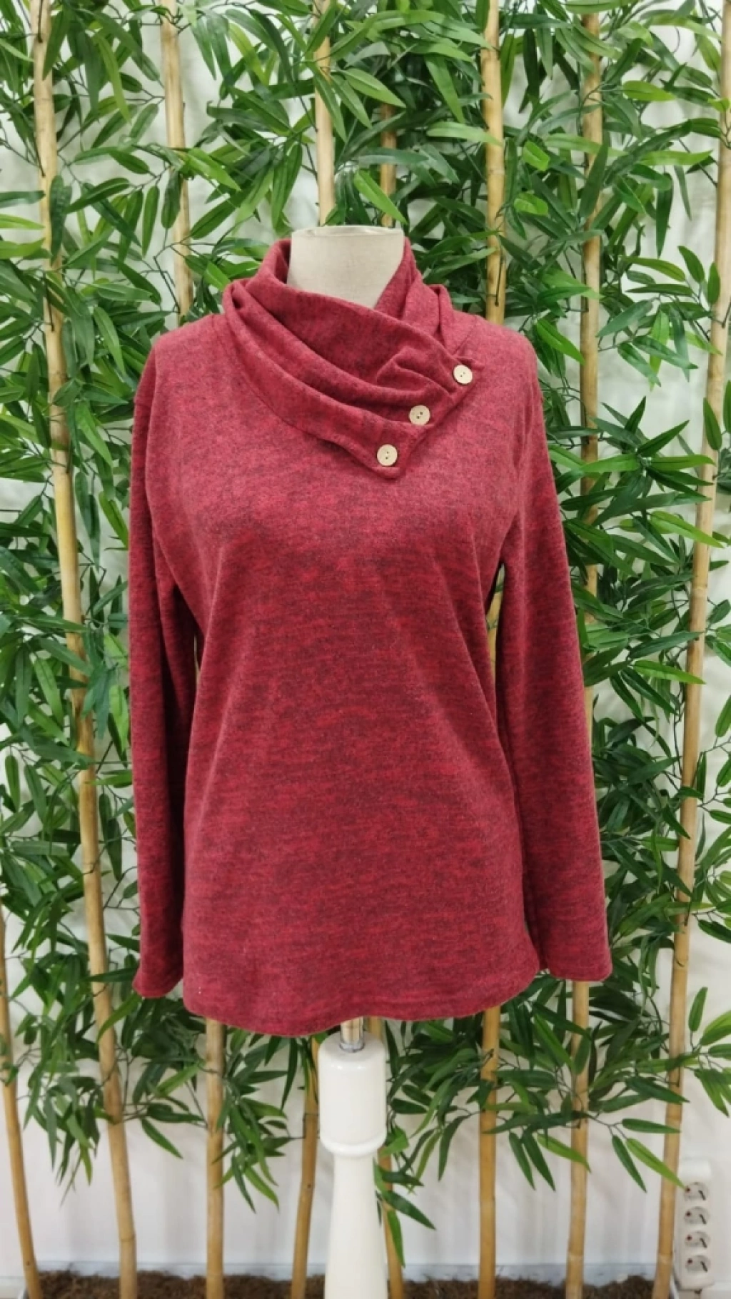 Kadın Uzun Kollu Kapişon Yaka Düğmeli Yumoş Bluz