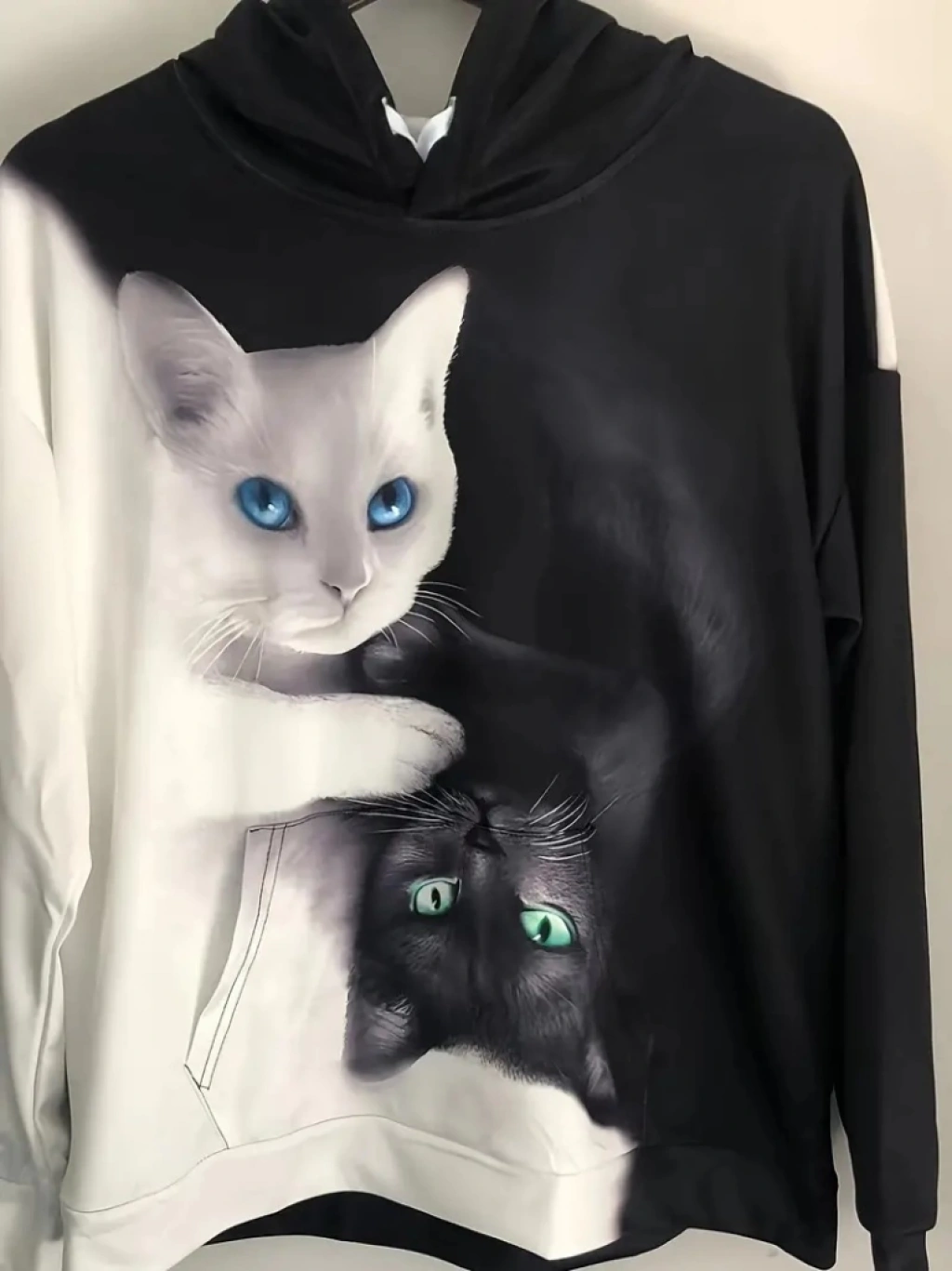 Kadın Uzun Kollu Kapşonlu Bağcıklı Kedi Desenli şardonlu Dalgıç Bluz