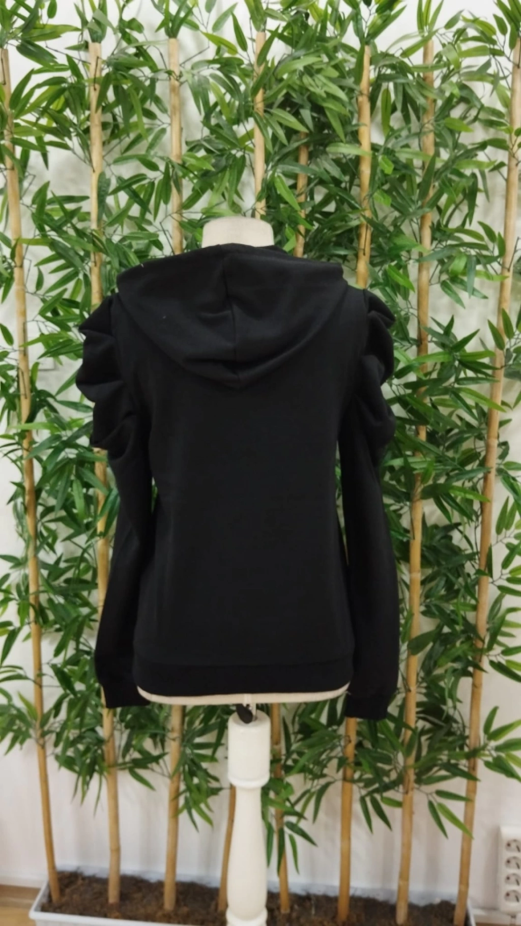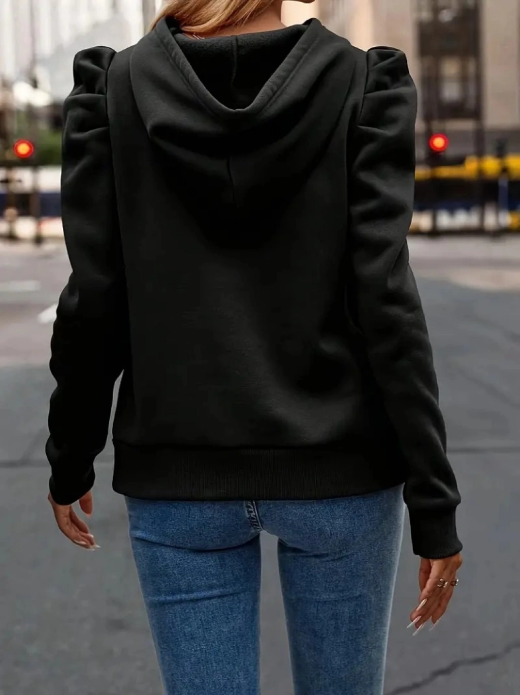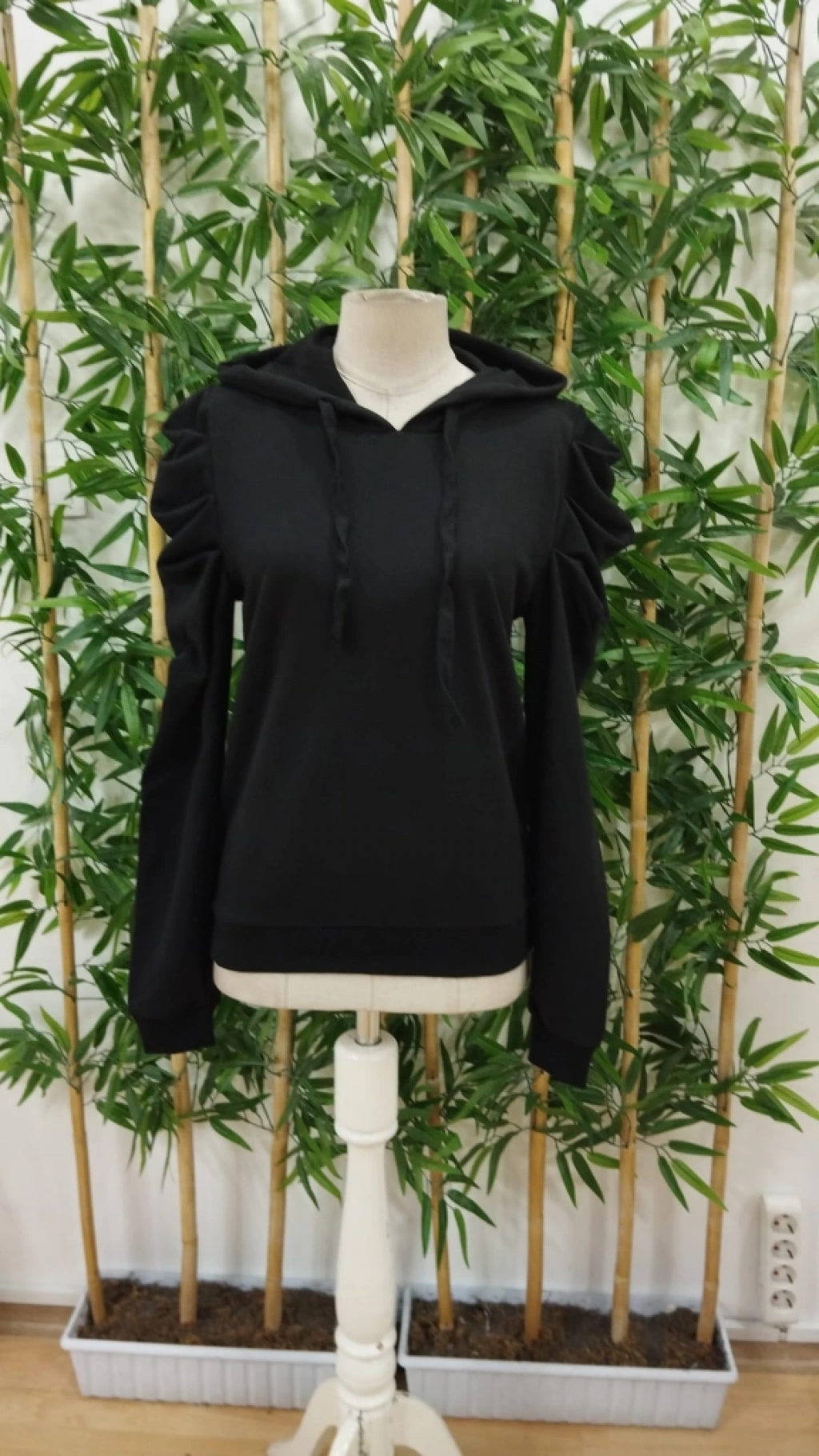 Kadın Uzun Kollu Kapşonlu Bağcıklı Kollarda Büzgü Detaylı Iki Iplik Bluz