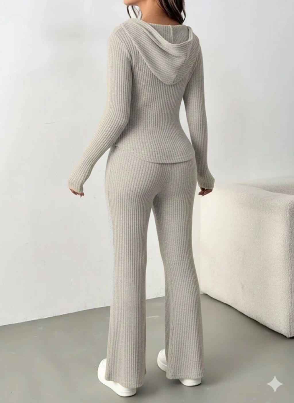 Kadın Uzun Kollu Kapşonlu önden Fermuarlı Kaşkorse Bluz Ve Pantolon Ikili Takım