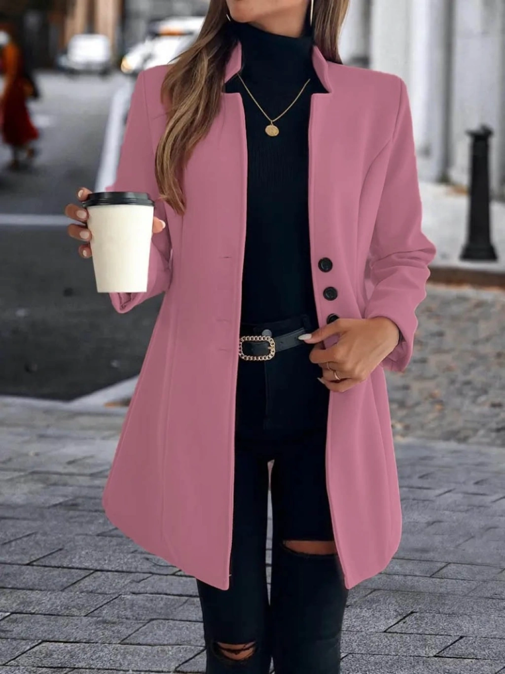 Kadın Uzun Kollu Kırlangıç Yaka önden Düğmeli Kısa Kaşe Kaban
