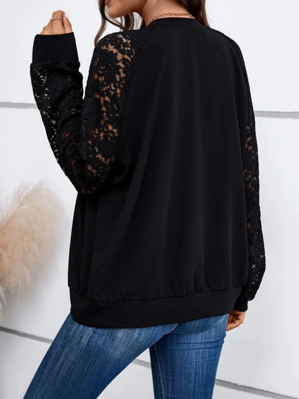 Kadın Uzun Kollu Kolları Dantel Detay önden Fermuarlı Viskon Iki Iplik Ceket