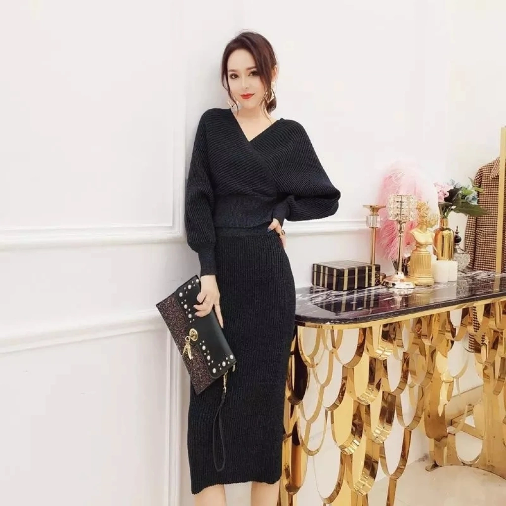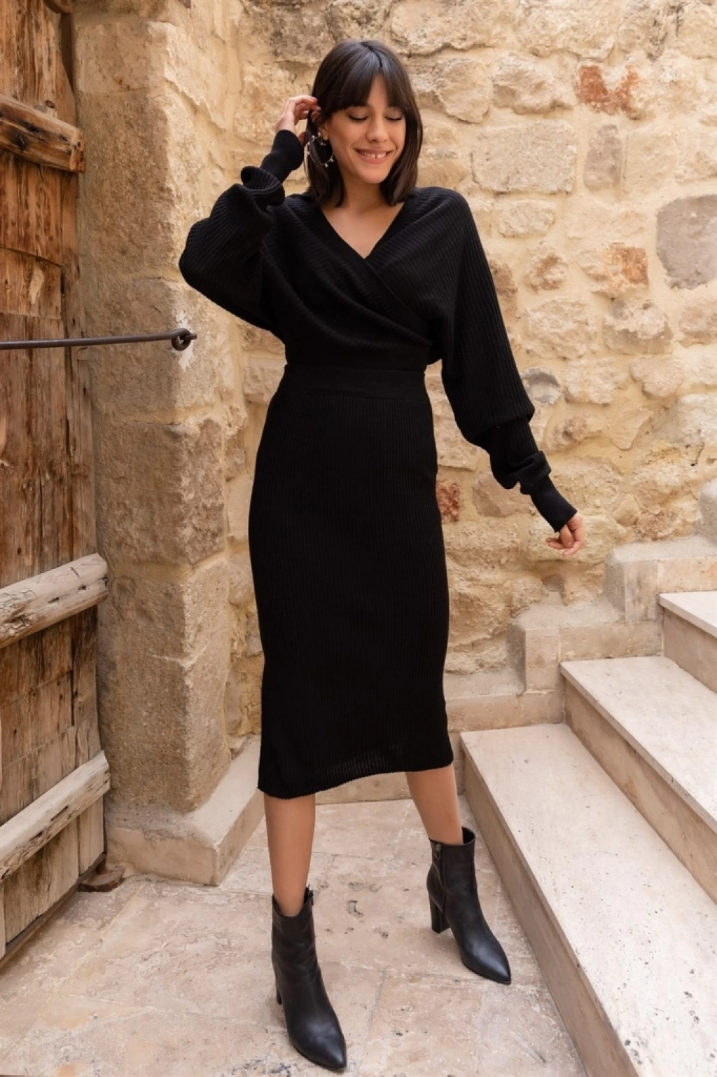 Kadın Uzun Kollu Kruvaze Yaka Triko Elbise