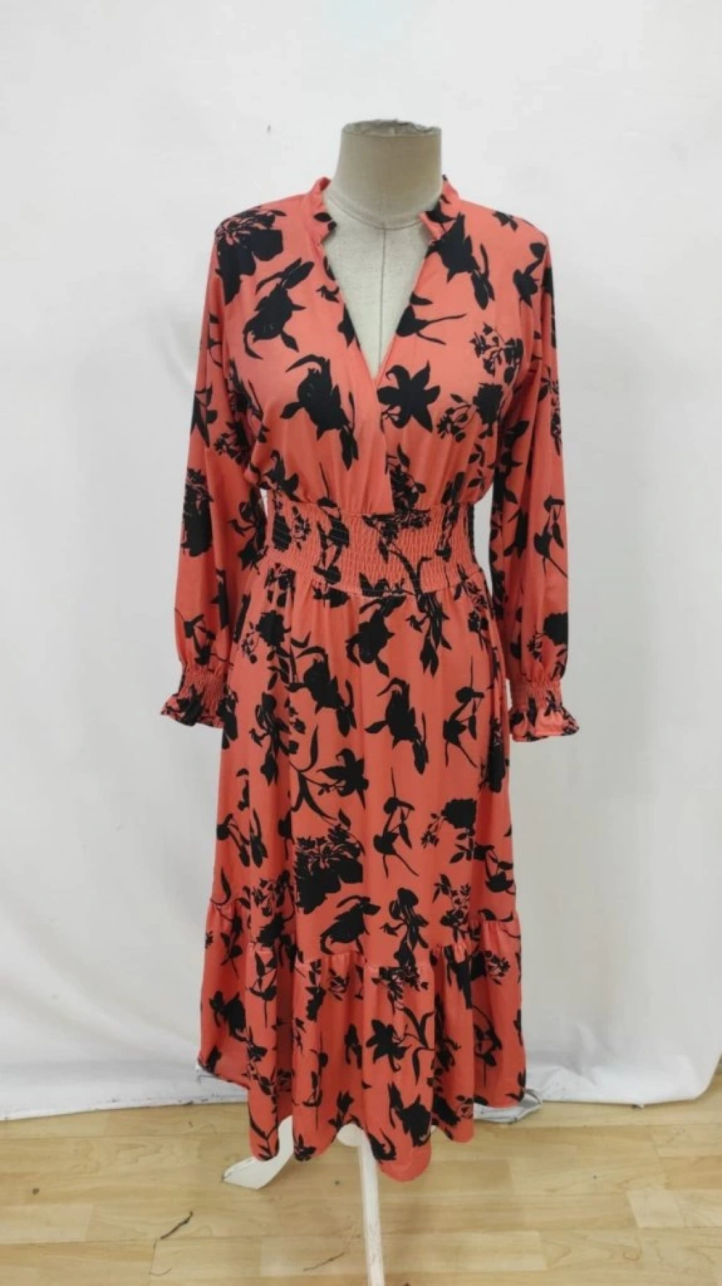 Kadın Uzun Kollu Kruvaze Yakalı çiçek Desenli Maksi Süprem Elbise