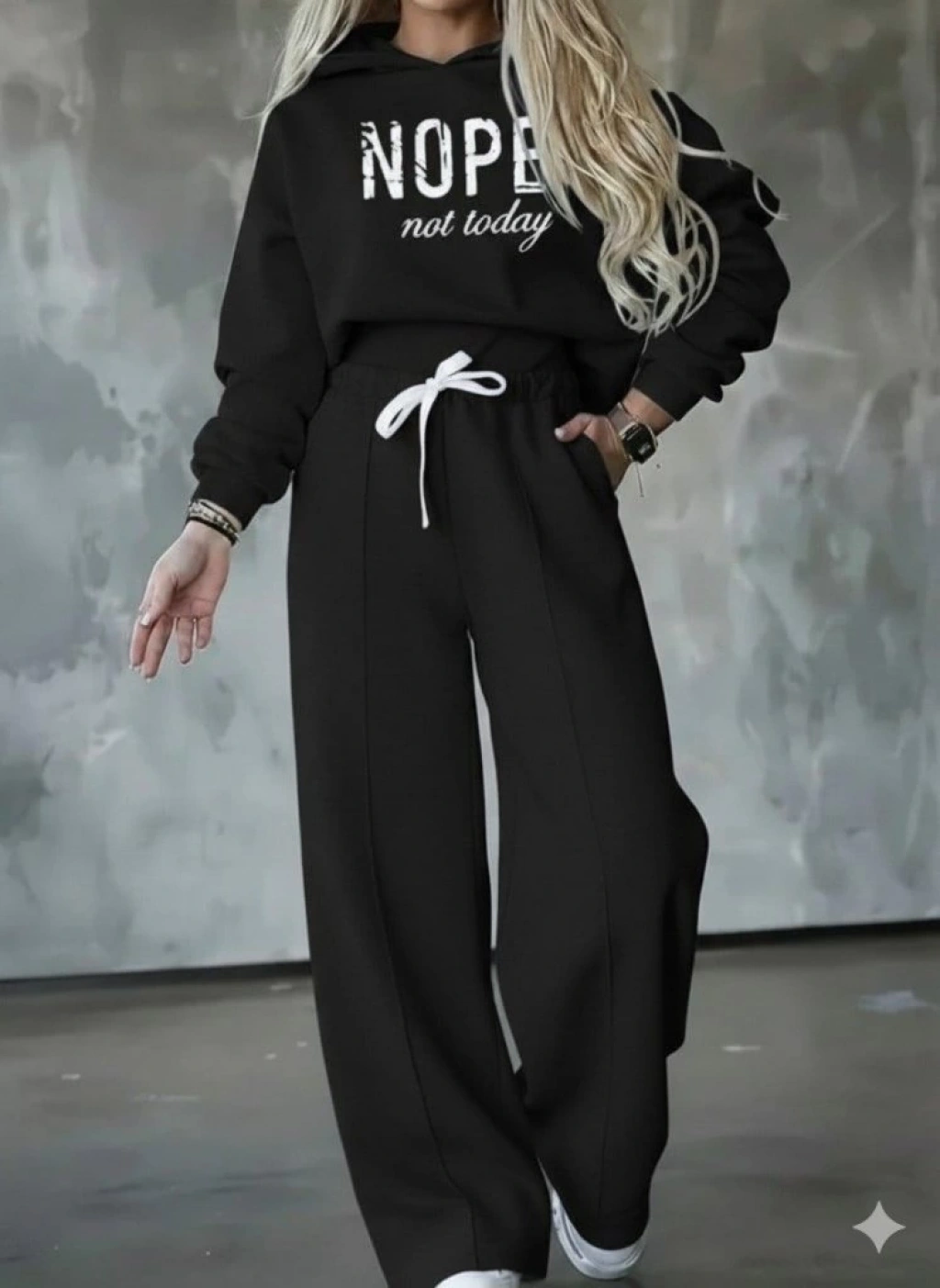 Kadın Uzun Kollu Nope Baskılı Beli Ribanalı Ikili Takım