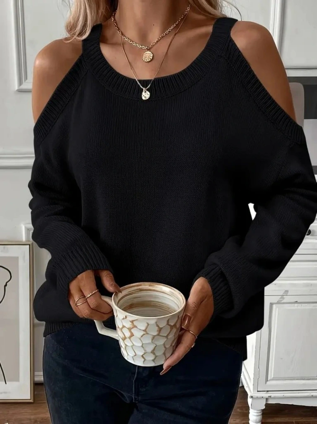 Kadın Uzun Kollu Omuzlardan Açık Askılı Triko Bluz