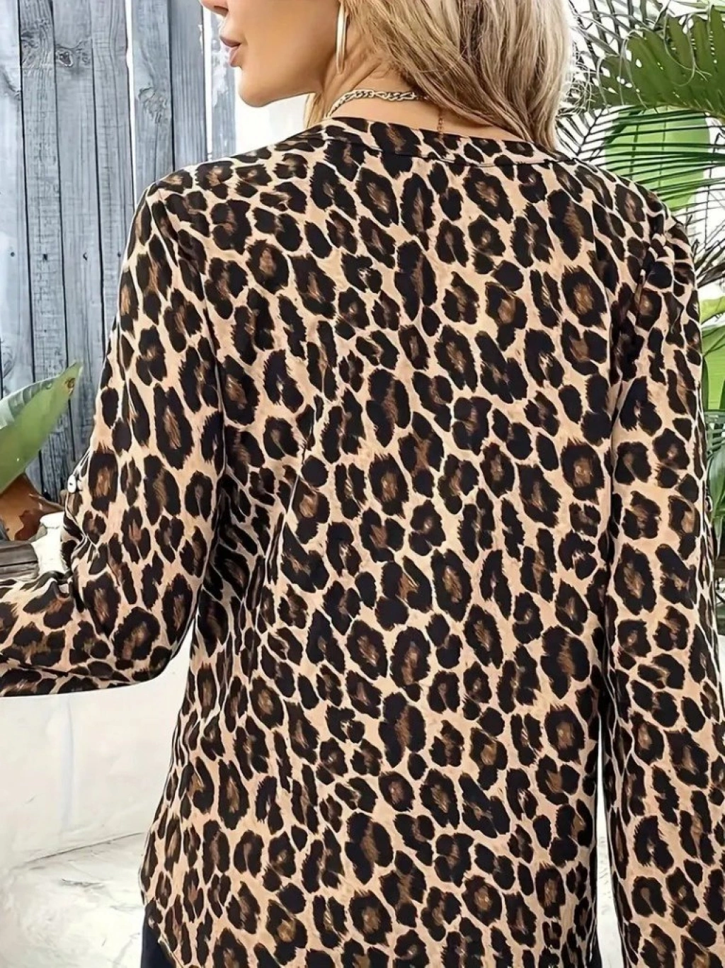 Kadın Uzun Kollu önden Fermuarlı Leopar Desenli Modal Bluz