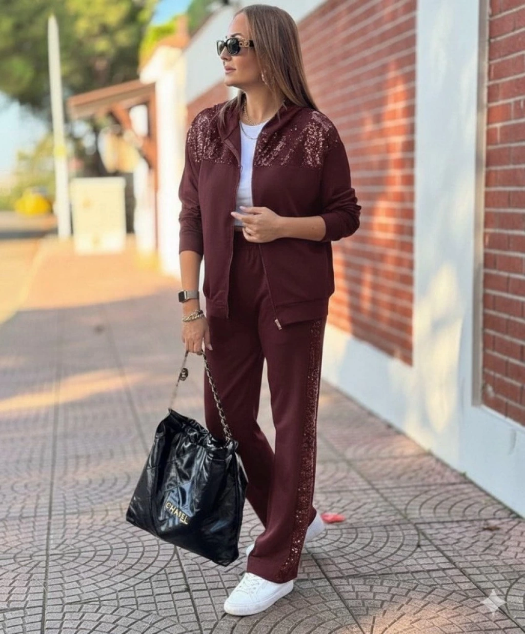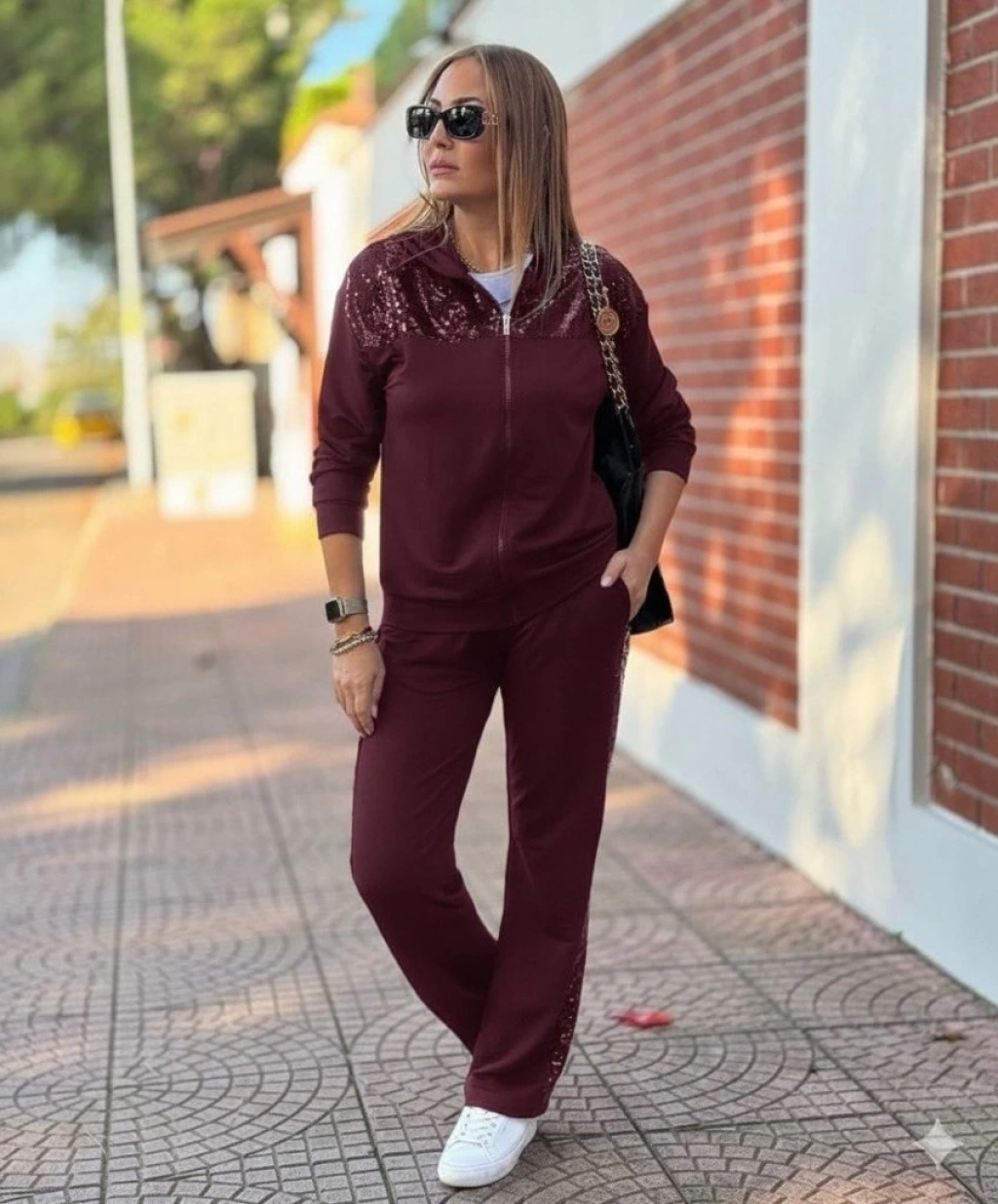 Kadın Uzun Kollu önden Fermuarlı Pul Payetli Alt üst Viskon Iki Iplik Takım
