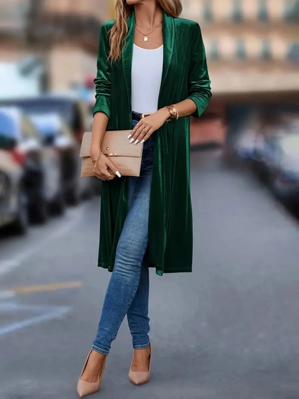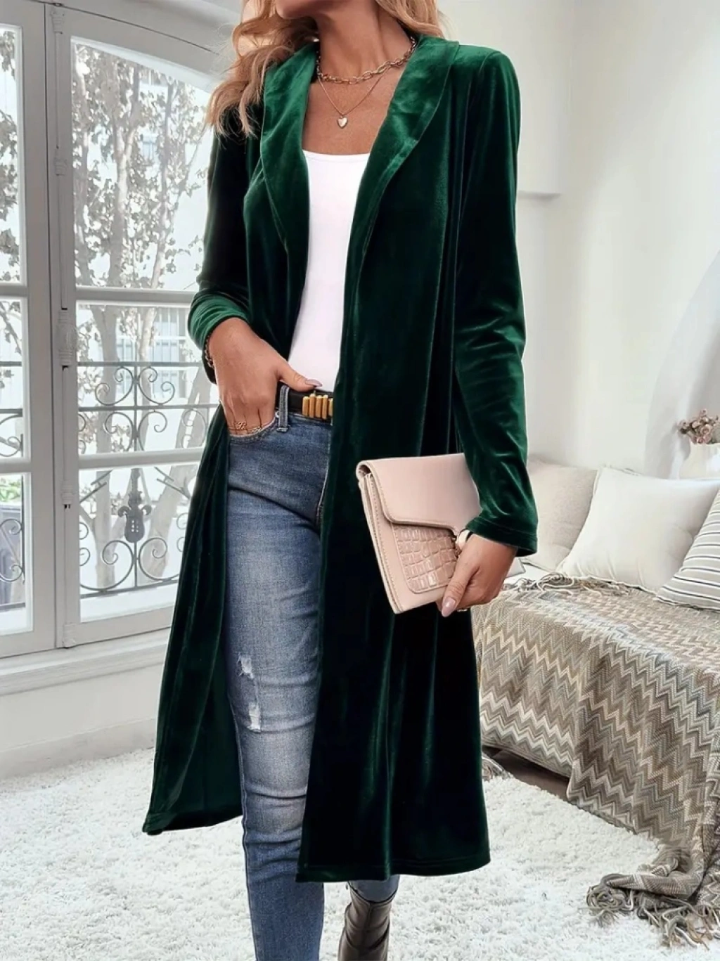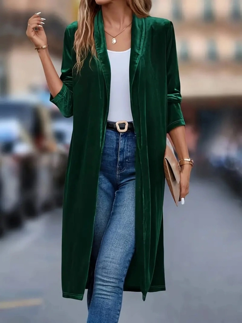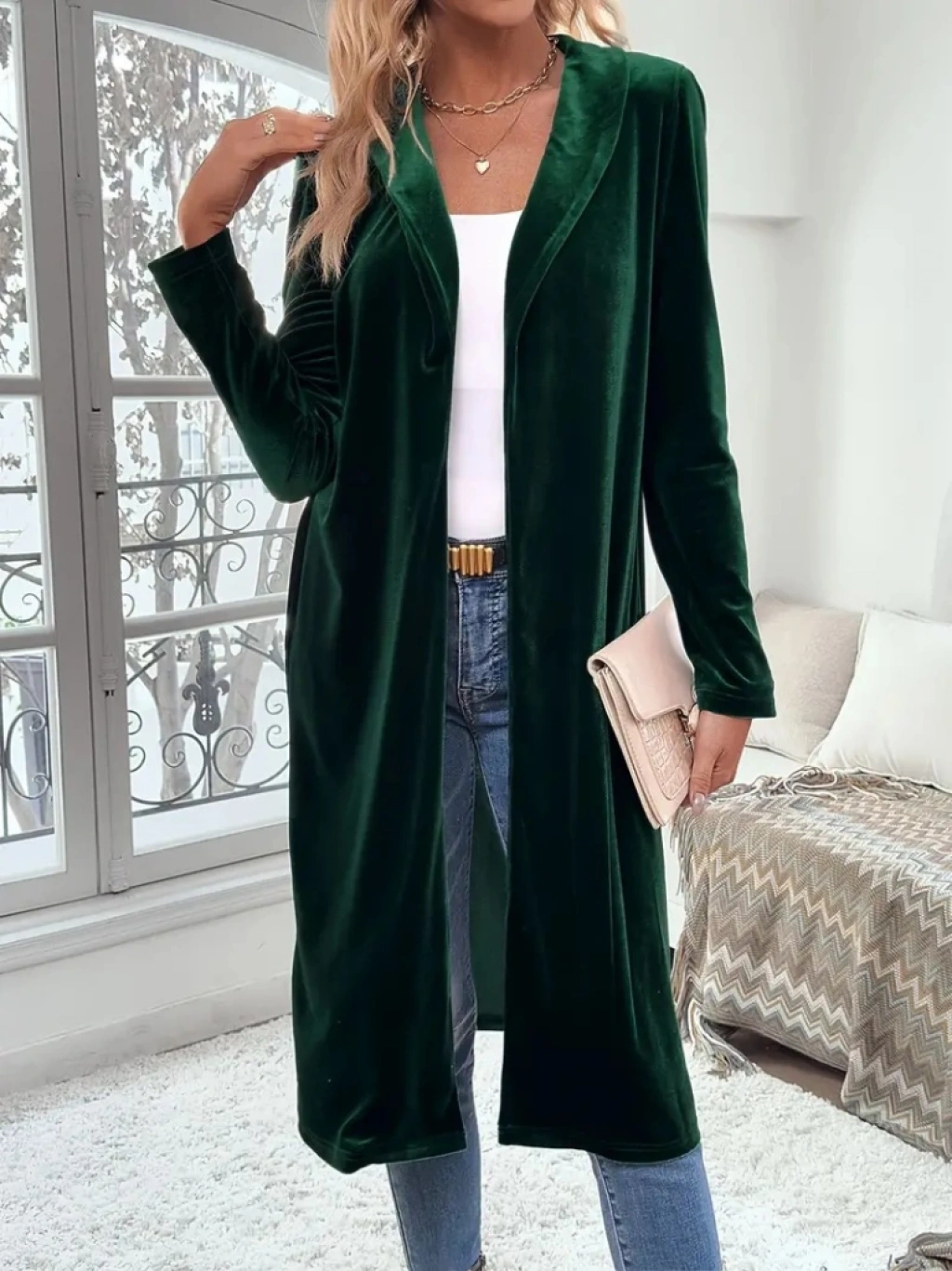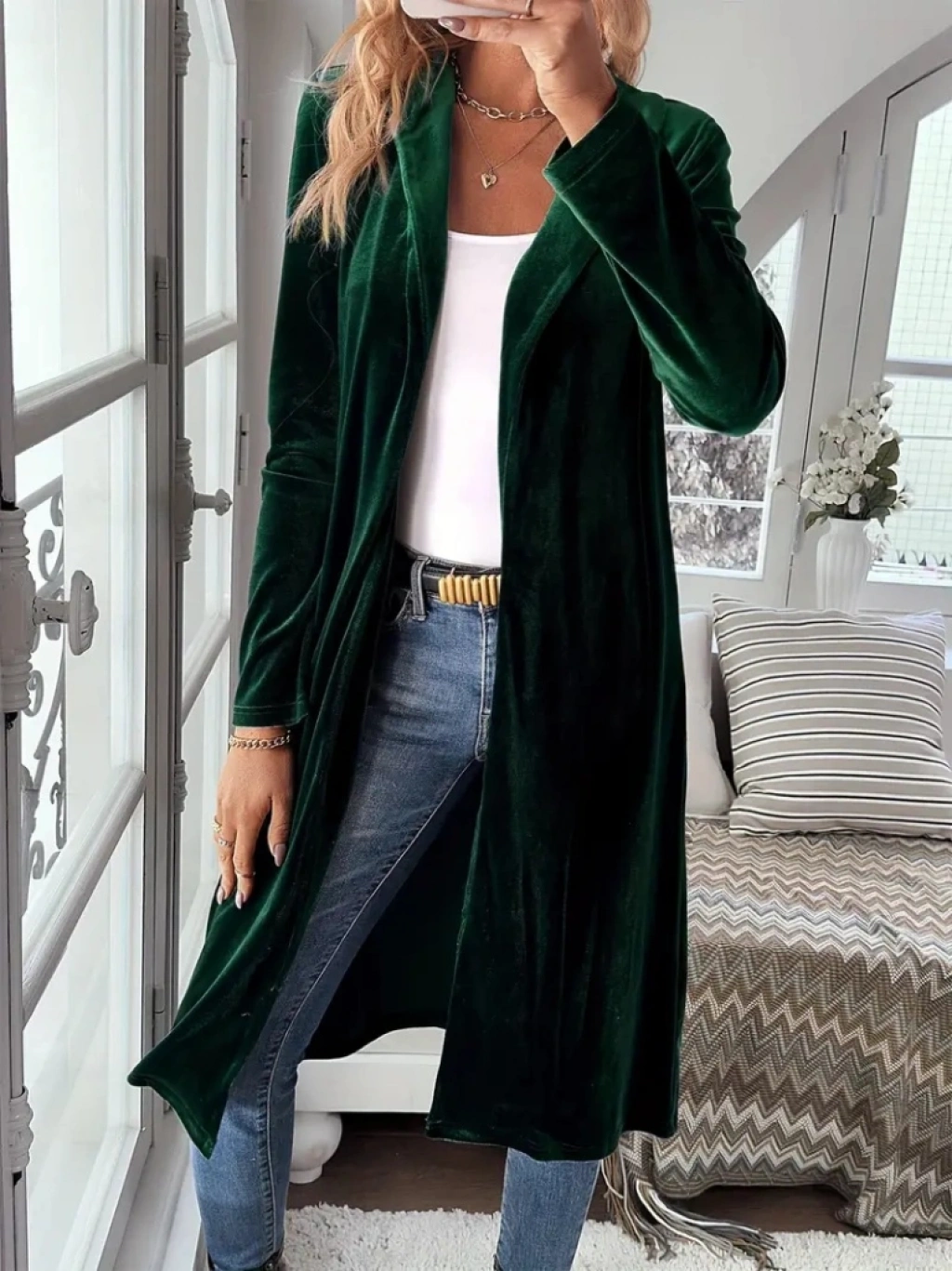 Kadın Uzun Kollu önü Açık Kolları Uzun Midi Ceket