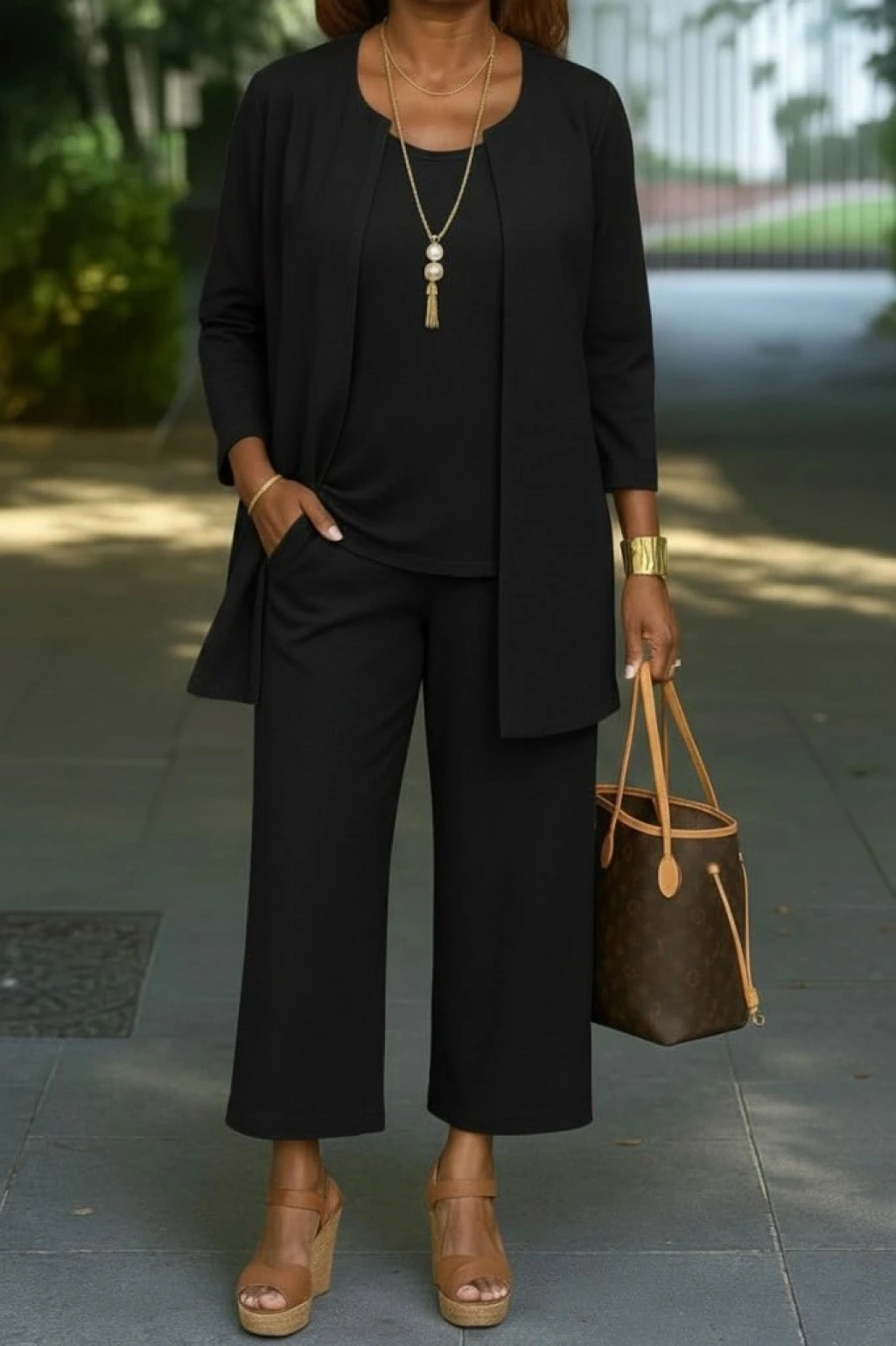 Kadın Uzun Kollu önü Açık Modal Ceket Kolsuz Viskon Iki Iplik Bluz Ve Pantolon üçlü Takım