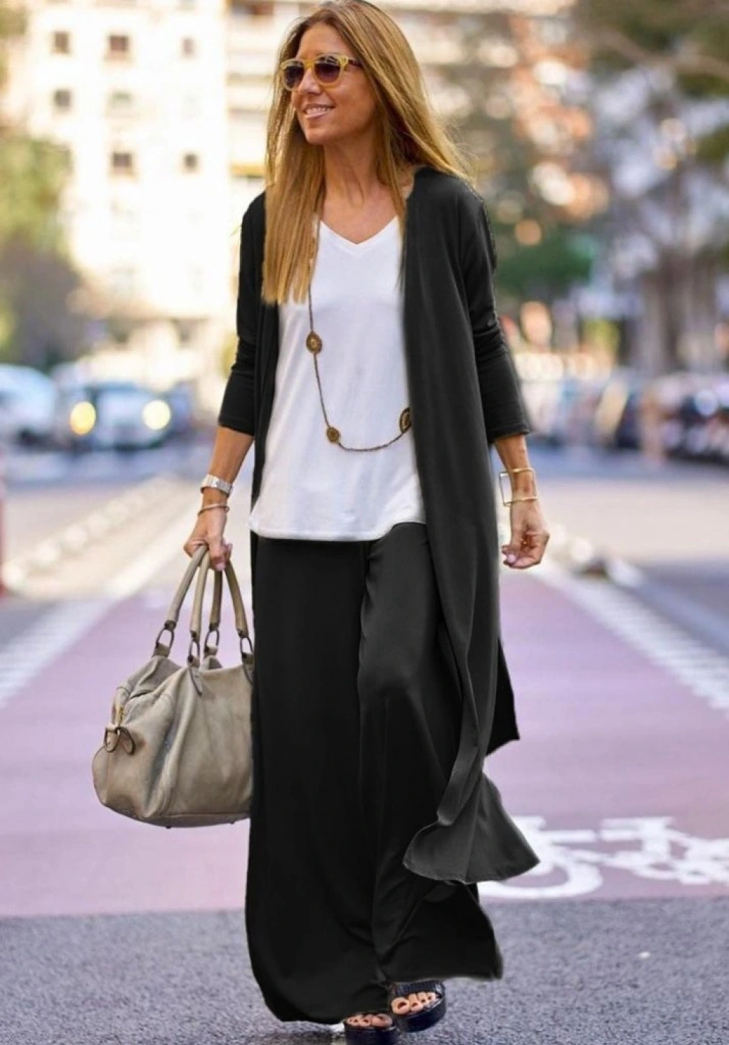 Kadın Uzun Kollu önü Açık Viskon Ceket Ve Pantolon Ikili Takım